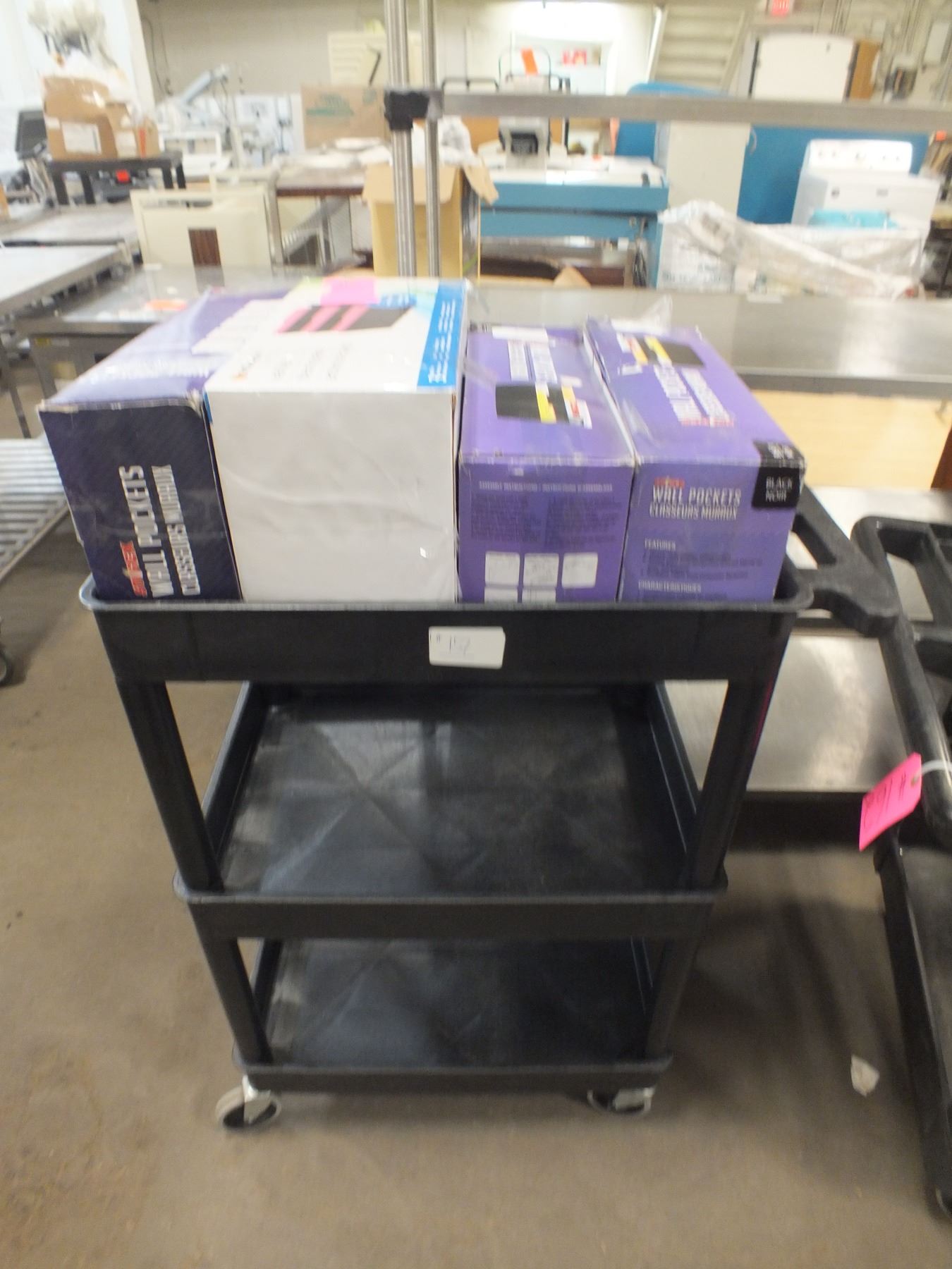 Black Cart On Wheels w/ File Wall Pockets...used