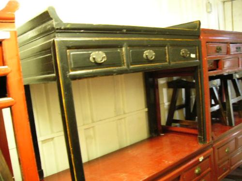 Black Chinese sideboard with 3 drawers- 37" H, 22" D, 48" W (300)