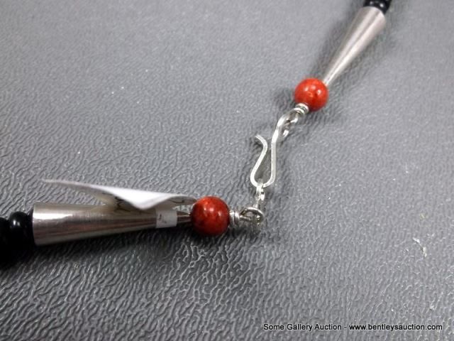 Black and Colored Bead Necklace w/ Inlaid Stone Butterfly Pendent, Chris Nieto, Santo Domingo, Wei
