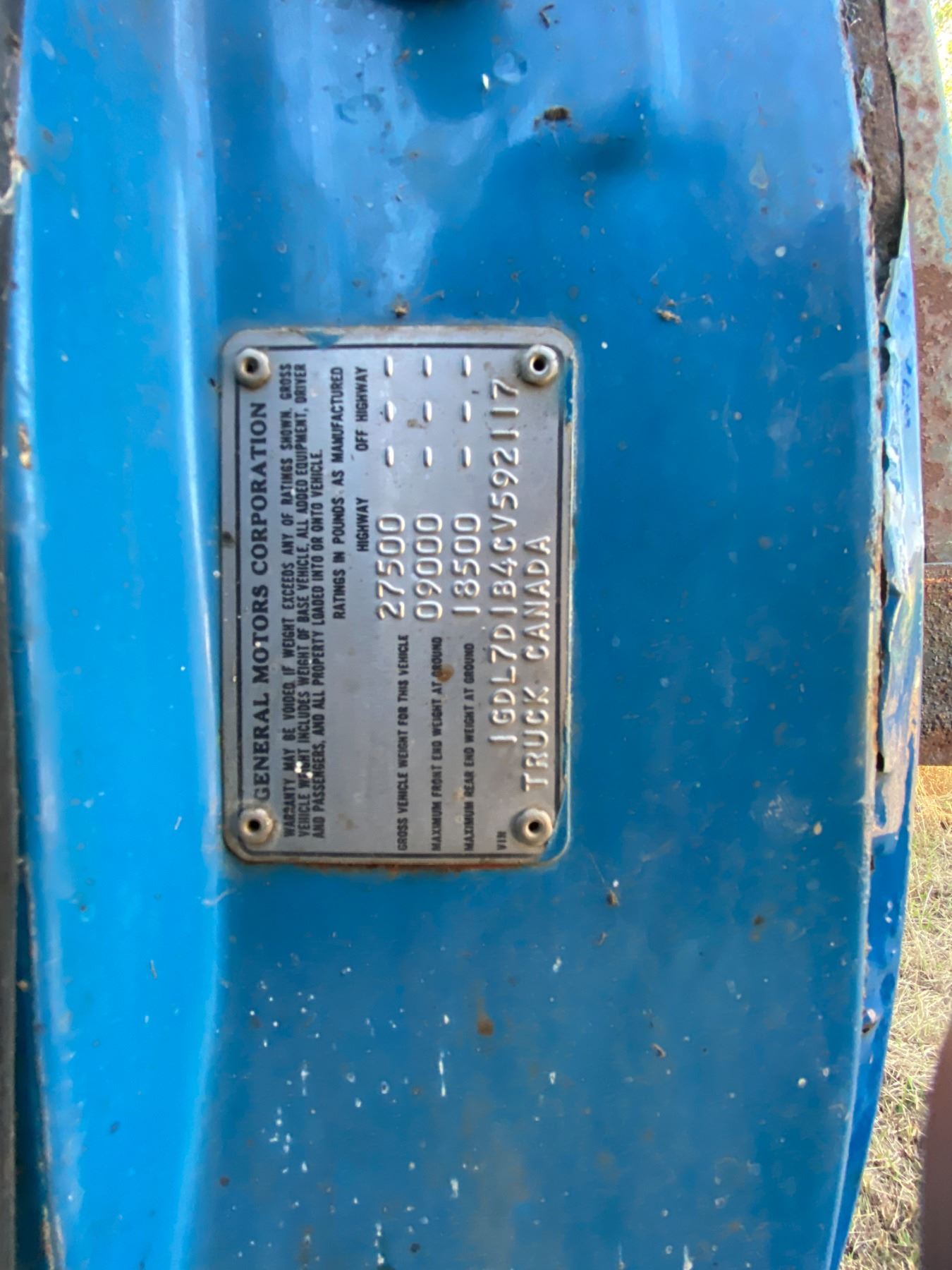 Blue GMC GRAIN TRUCK V8 STANDARD c/w box and hoist not running JGDL7D184CV592117