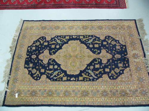 Blue & Tan Hand Tied All Wool Oriental Carpet 48"x 67" (74)