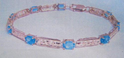 Blue Topaz Bracelet, 10K yellow gold- blue topaz are oval, faceted, approx. 5.00 carats, transparent, medium blue- estimated retail replacement cost $925 (12)