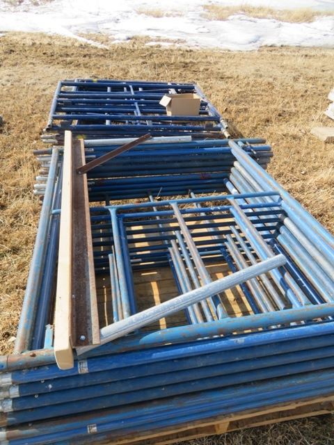 Blue scafolding on casters approx 15ft high 5x5’ sections