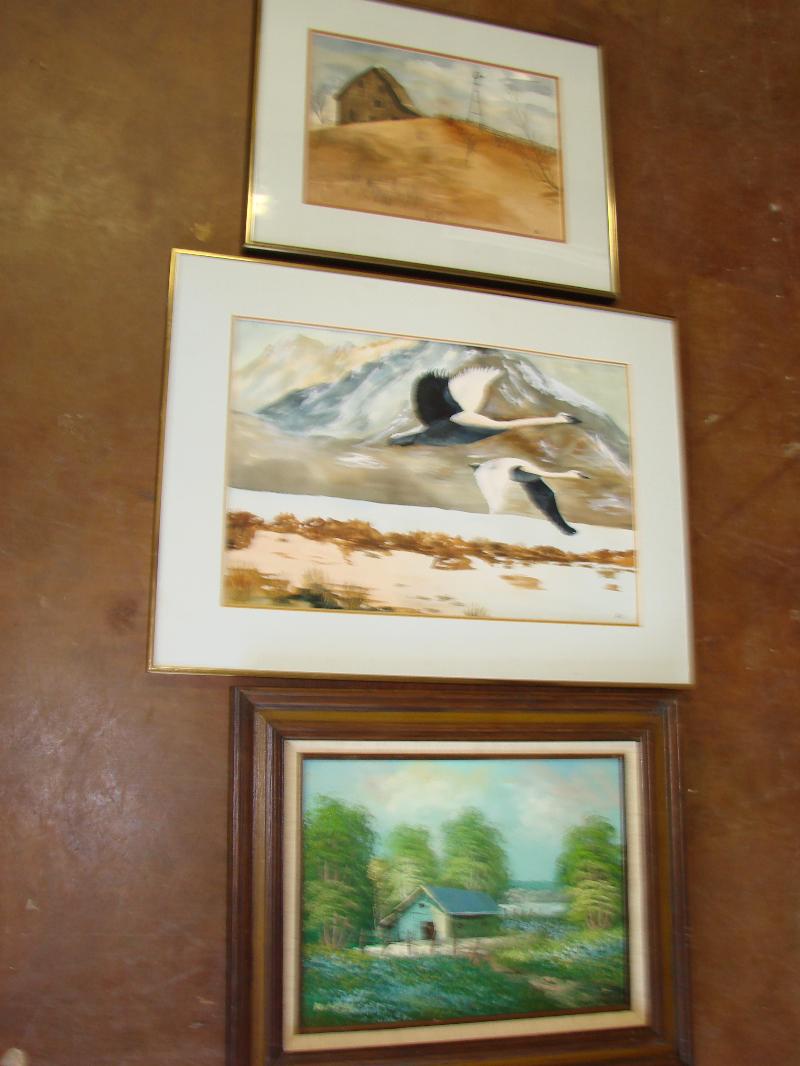 Bluebonnet oil on canvas by K. Meal, & 2 watercolors (signed "N")