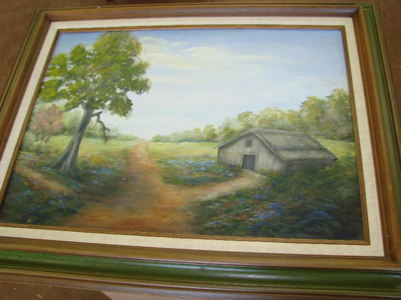 Bluebonnets & country barn oil on canvas, apprx. 25" x 31"