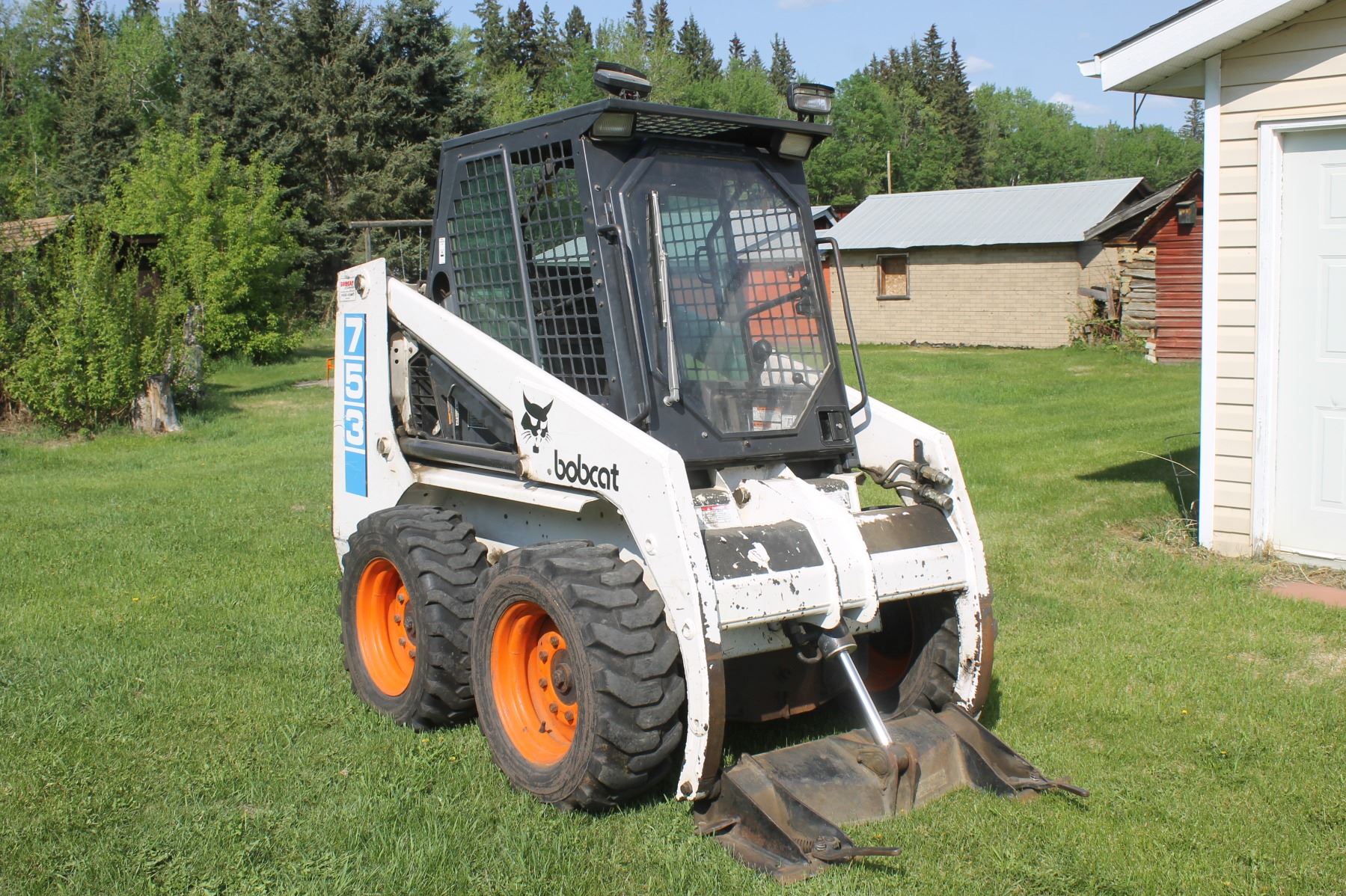 Bobcat 753 c/w door, aux. hyd., the unit goes ahead and back, and the hyds, lift and angle but there is no steering to the right or left. Otherwise runs nice, #508616179