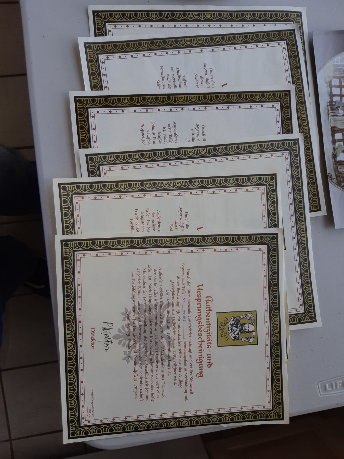 6 x framed collector plate with Certificates. Pickup at 9 am