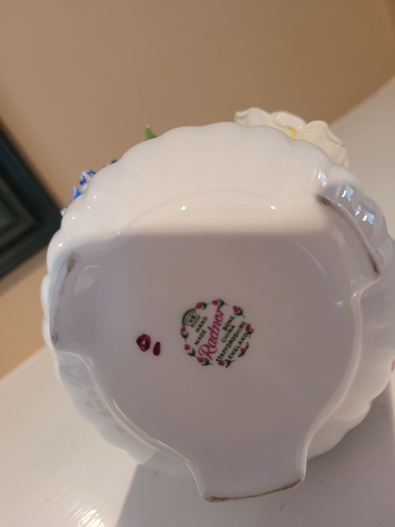 Mostly made in England, decorative bone china decor.some minor chips. Pick up 9