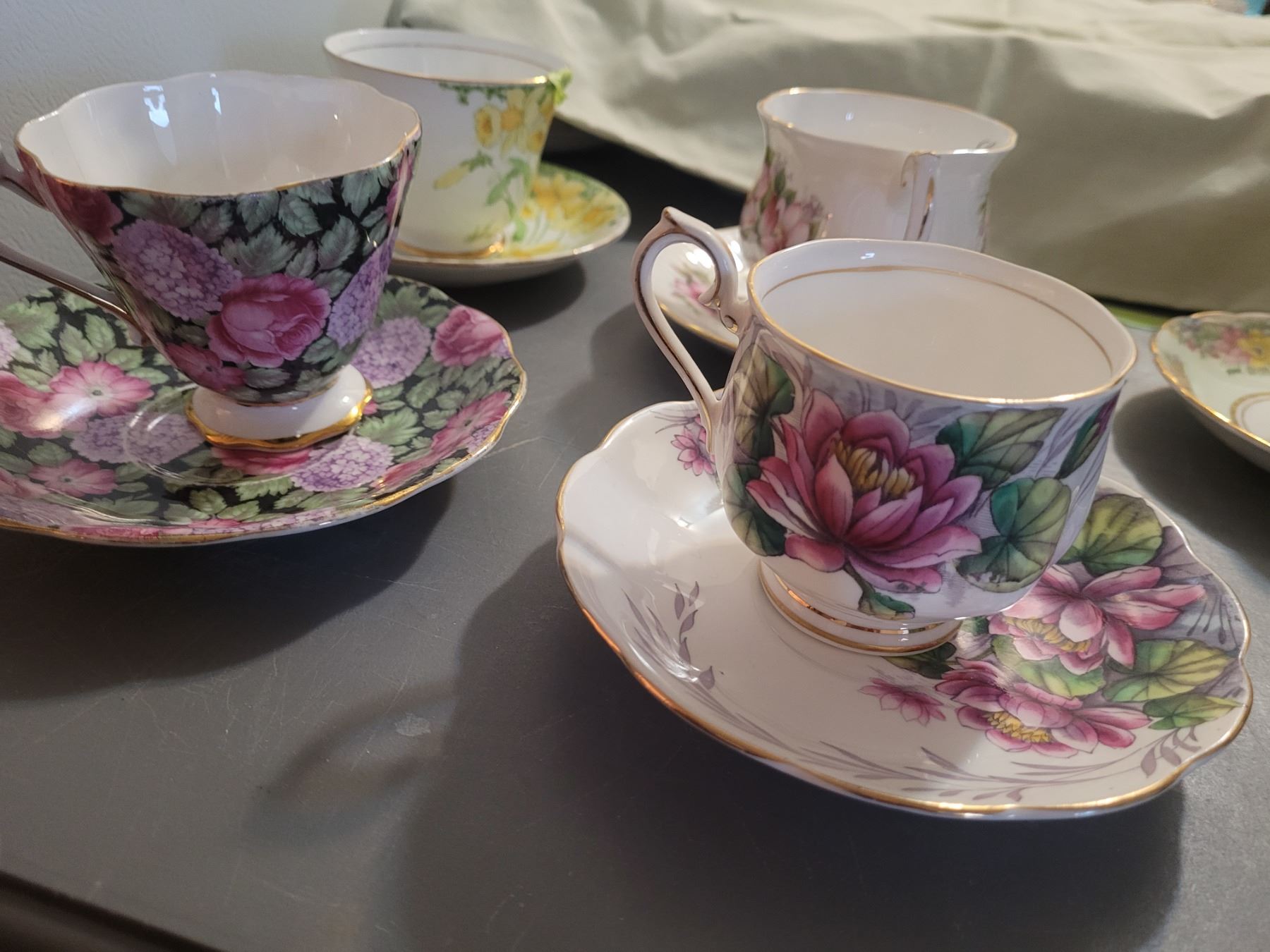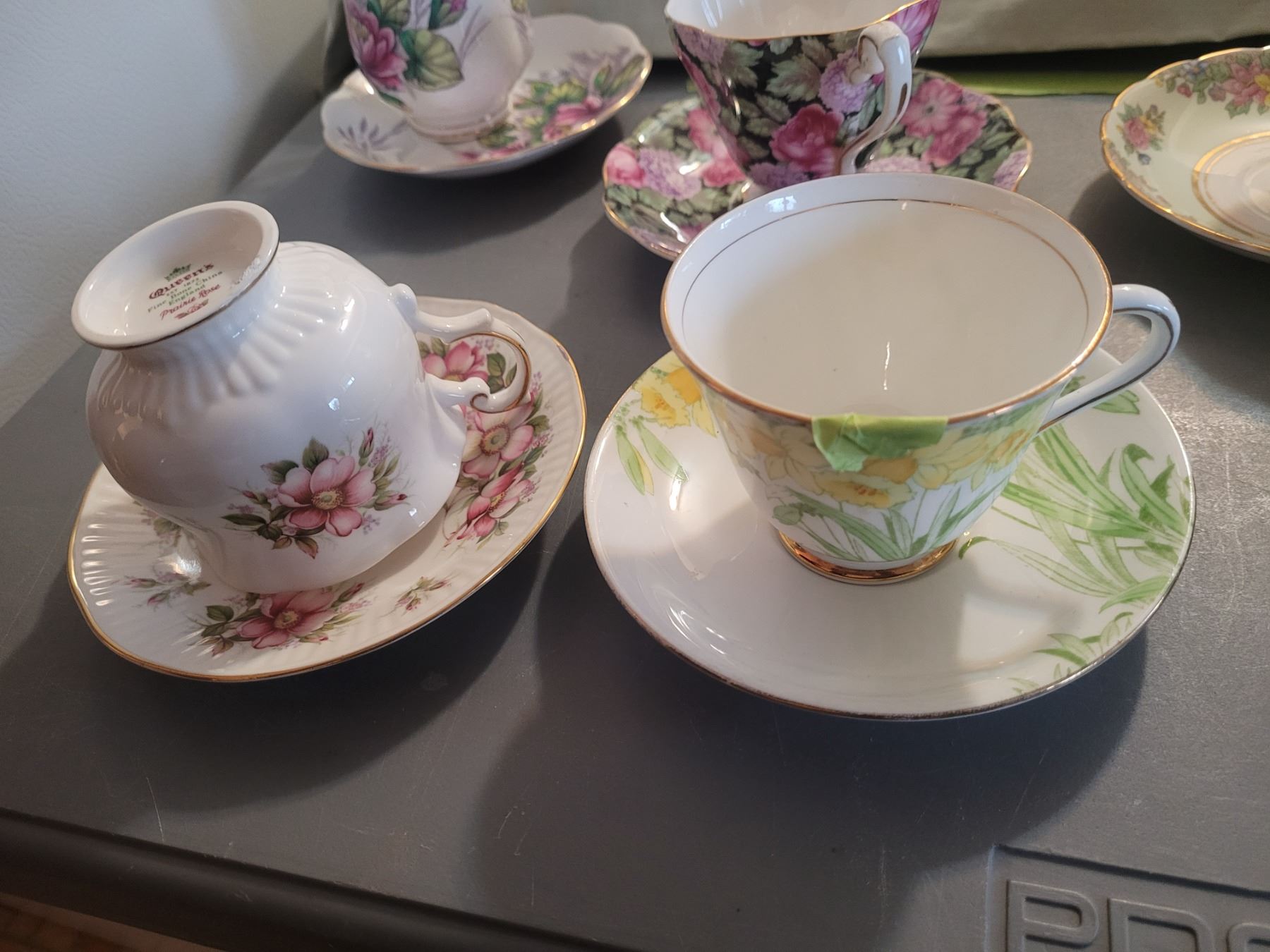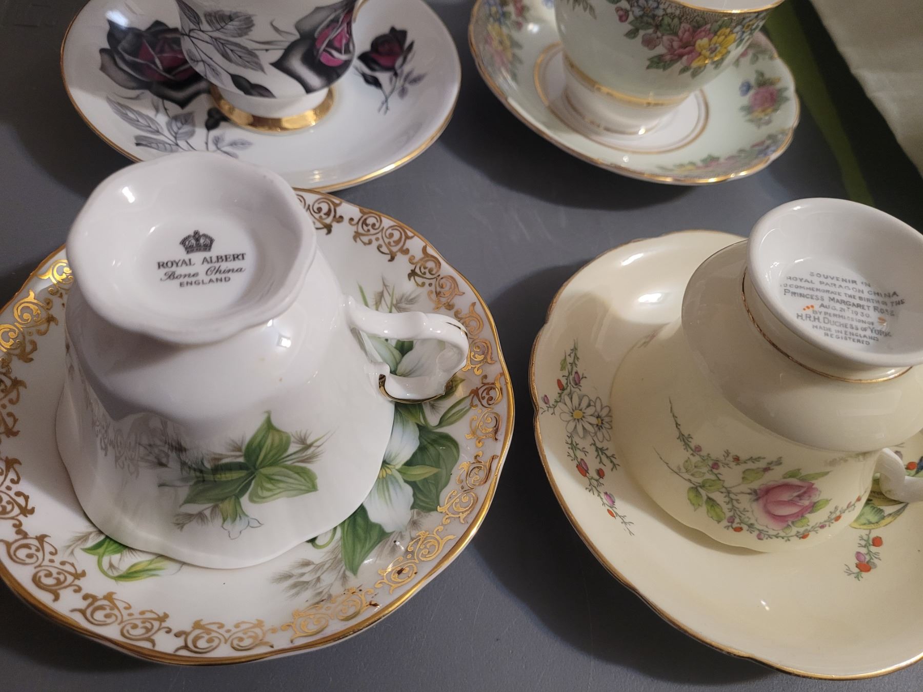 Vintage Paragon souvenir cup & saucer commentating birth of Princess Margaret, 1930. Royal Albert, Royal Standard, Queen's, more. Eight in total. Bring packing material. Pick up 9-10