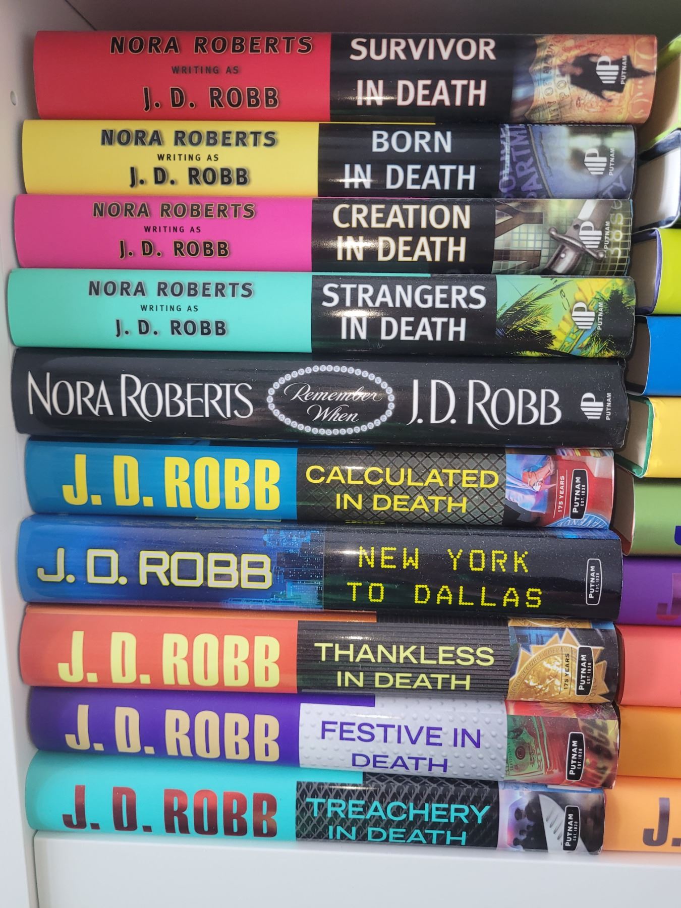 2 shelves of hard and soft covered books. About 40 books. Pickup at 10 am