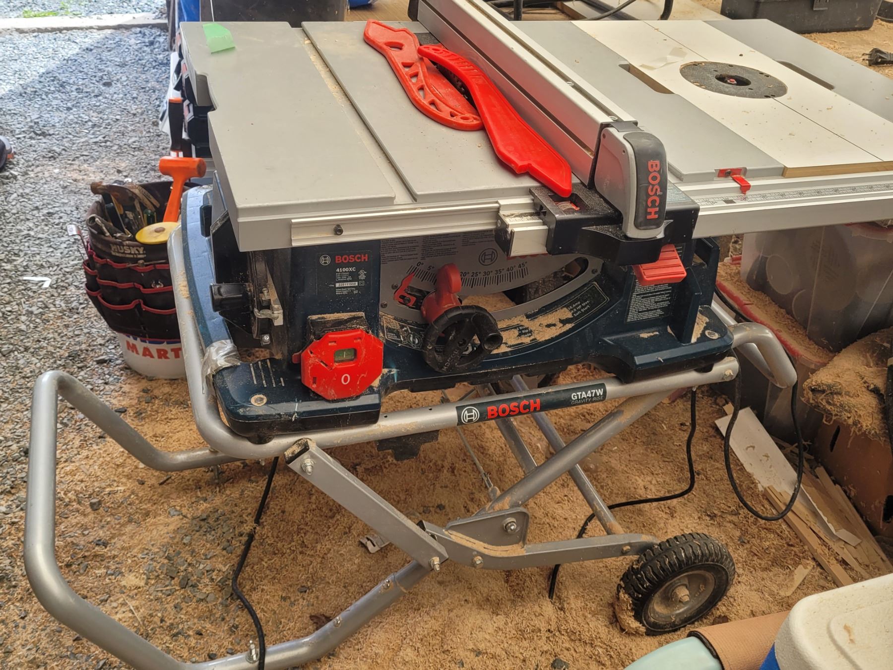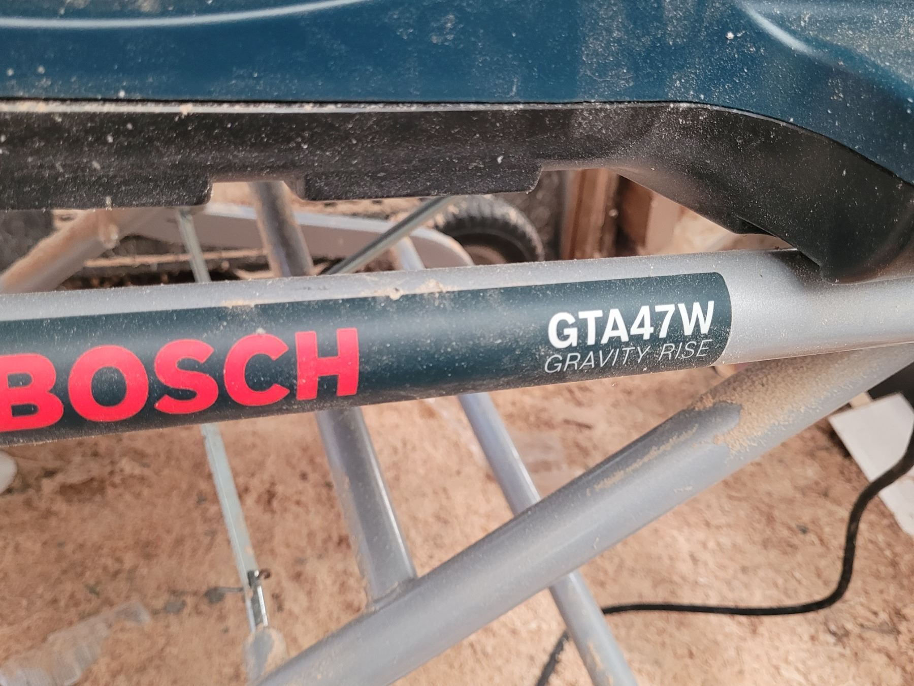 GTA47W Gravity Rise Cart. Bosch 4100XC table saw. Tested. Pickup at 11 am