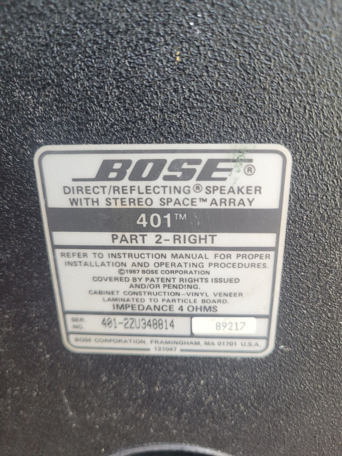 Pair of Bose speakers serial 401-2zu348814 - 89217 untested pickup at 10 am