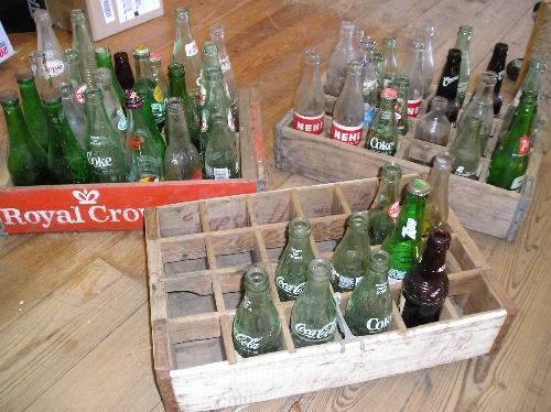 Royal Crown Cola and other wood bottles crates