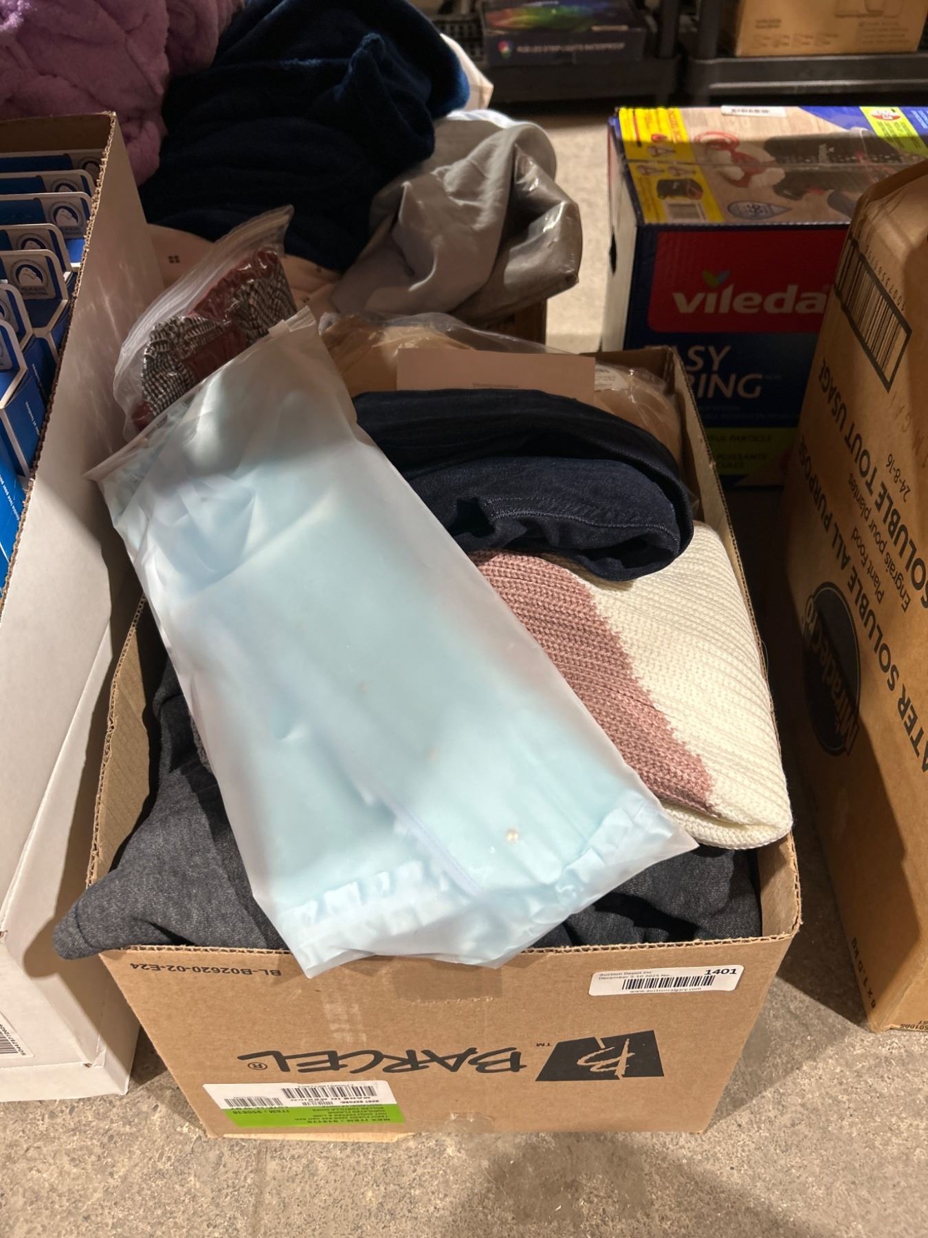 Box Lot of Assorted Clothing in men’s women’s and childrens styles