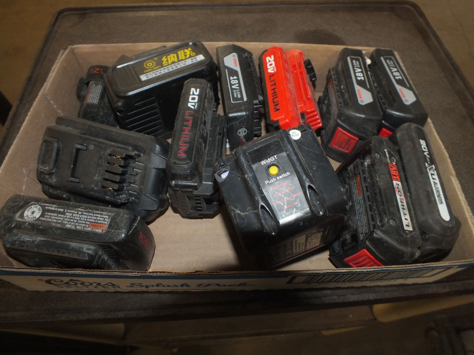 Box Of Assorted Power Tool Batteries, mostly Bosch...sold as is / where is...used
