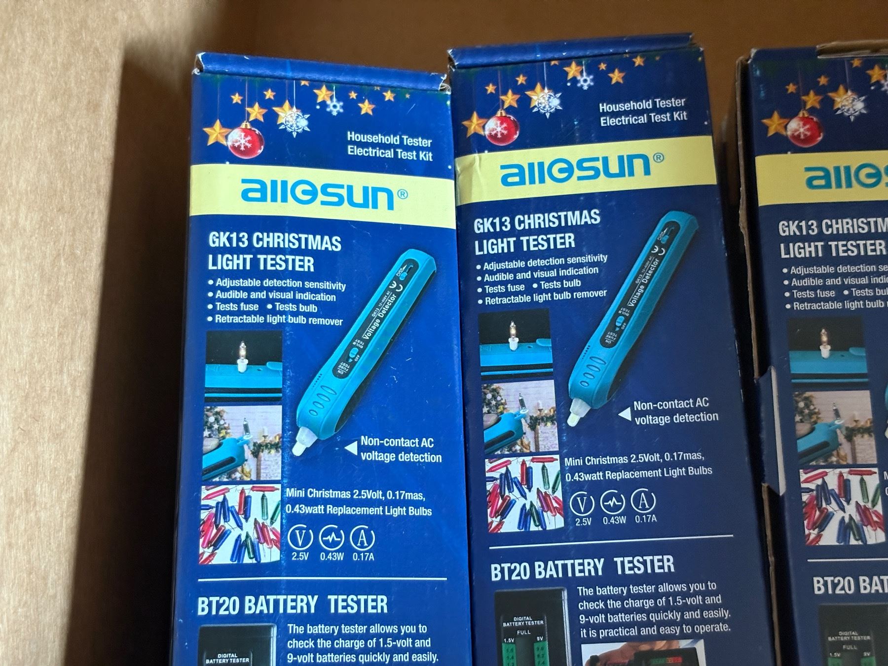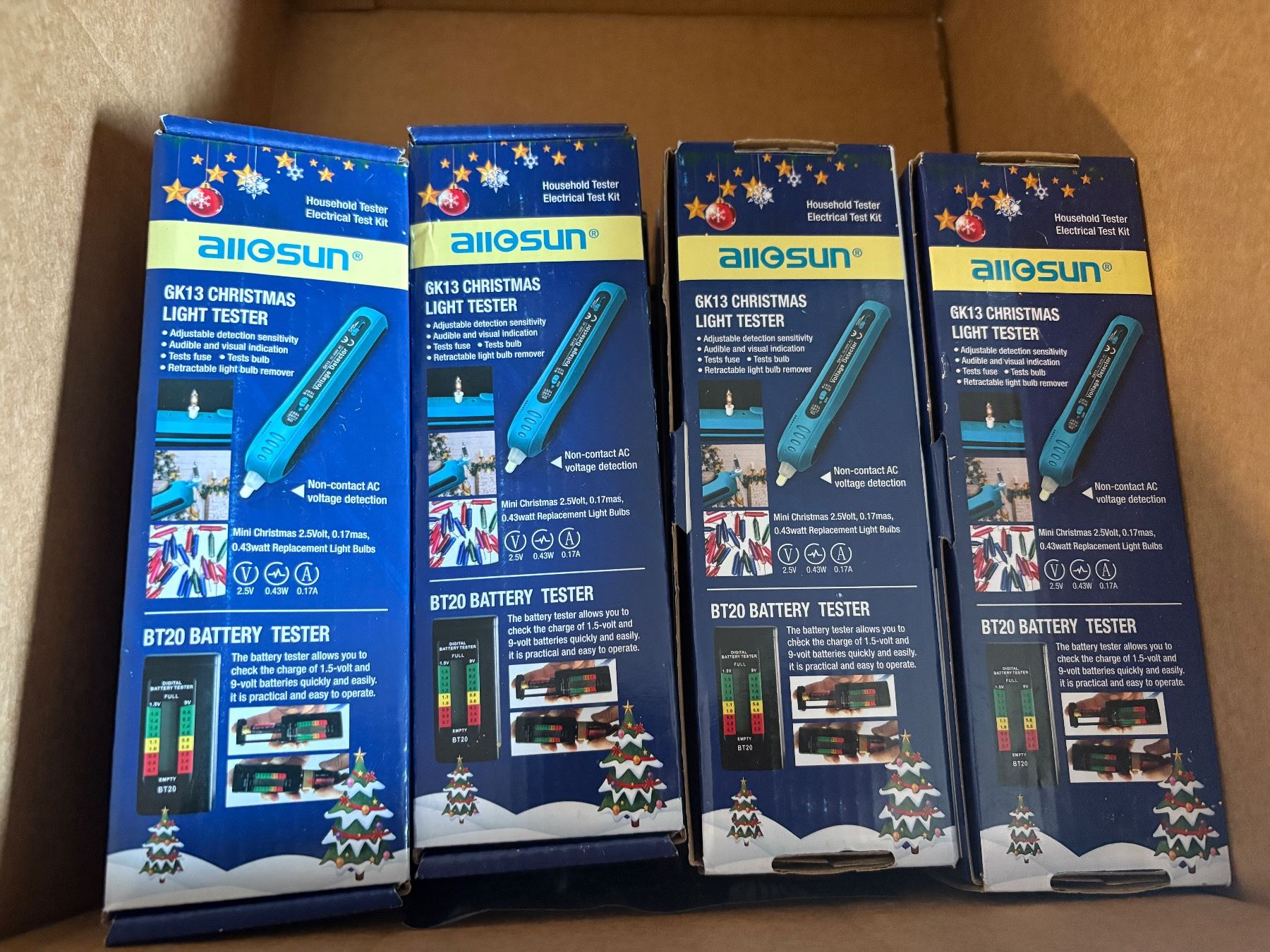 Box full of Allosun GK13 Christmas Light Testers