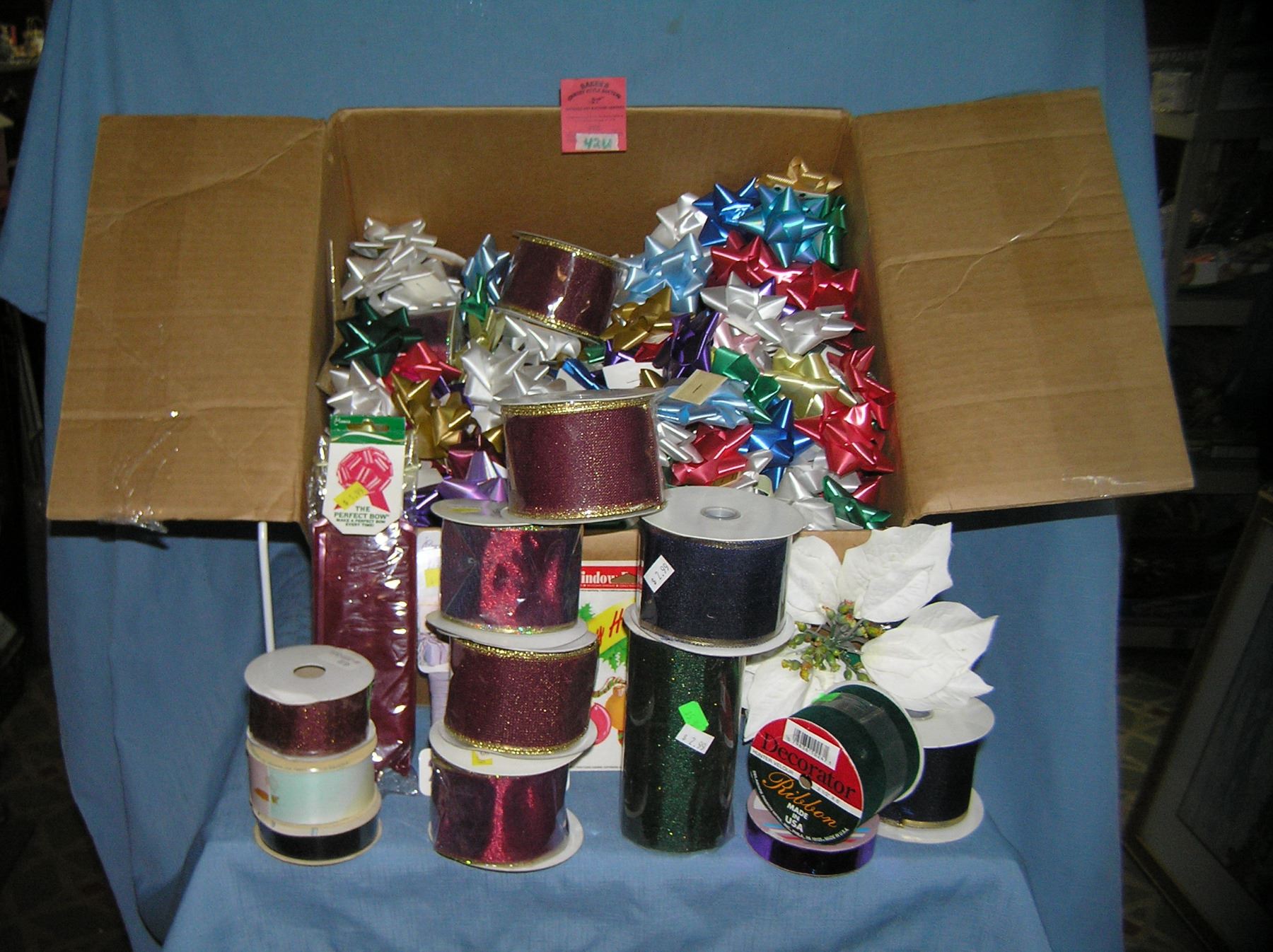 Box full of ribbons, bows and holiday accessoriesest. value 75.00-100.00