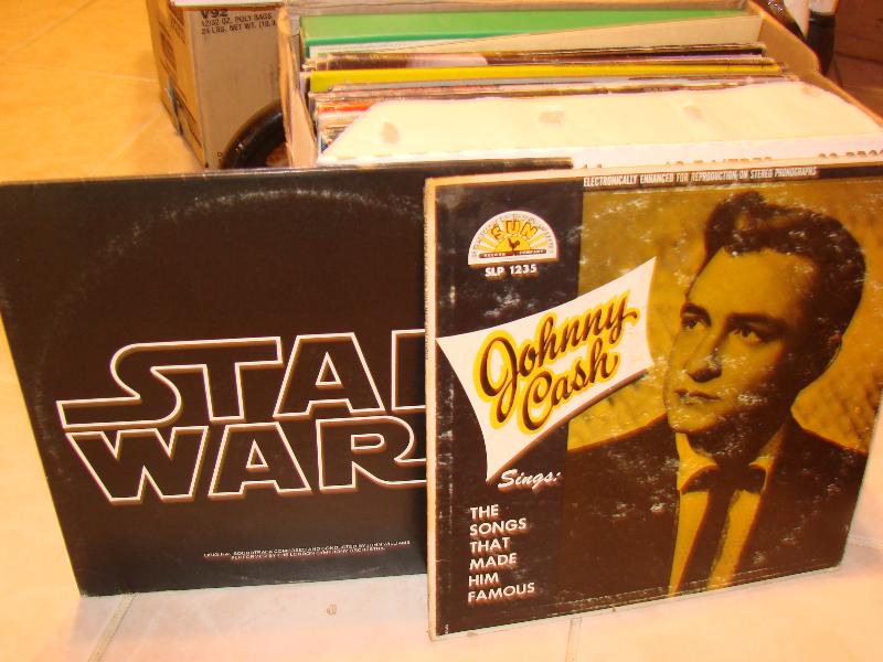 Box of LP's including Star Wars & Johnny Cash