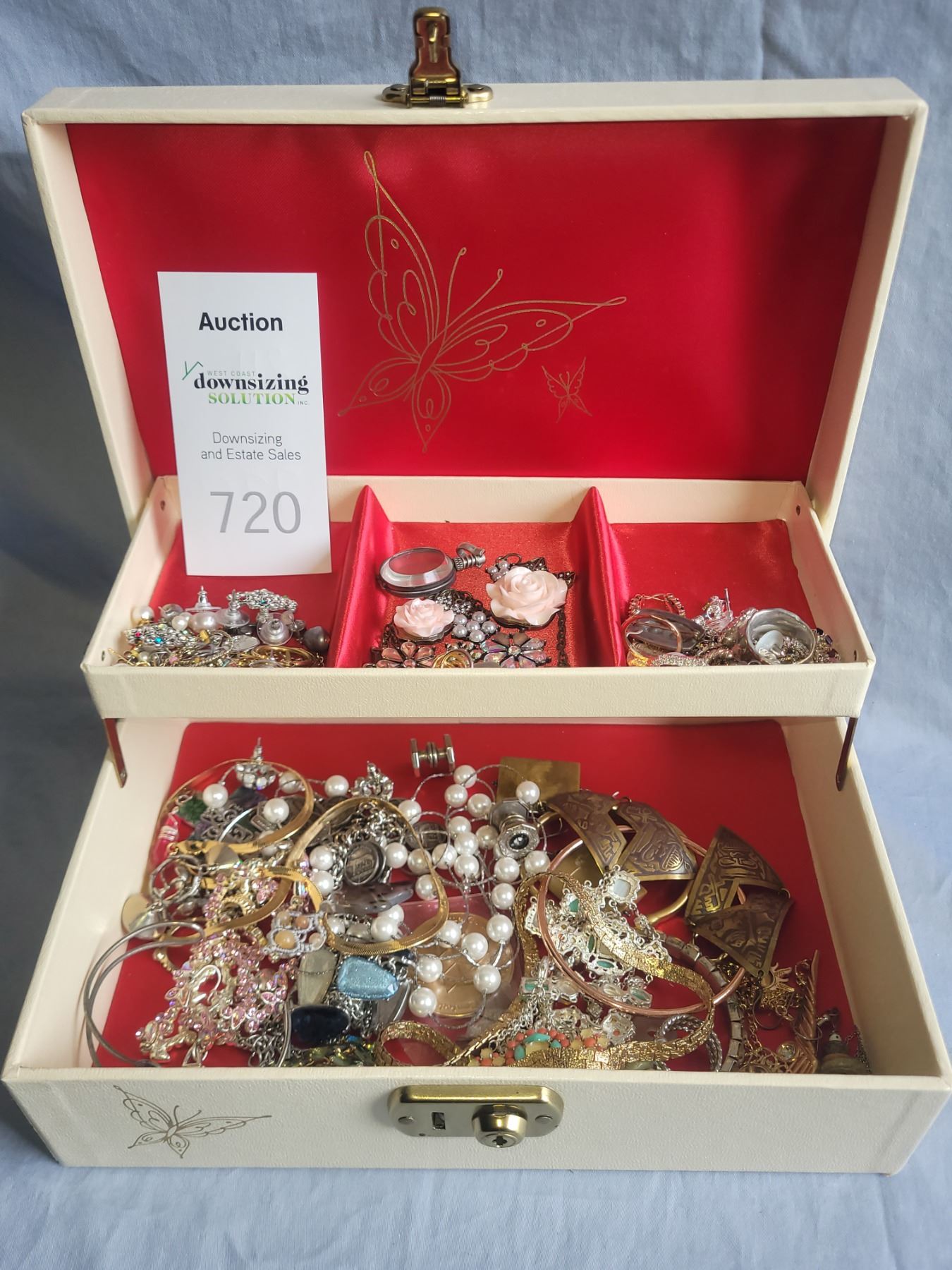 Jewelry box with vintage costume jewelry. Pickup at 9 am