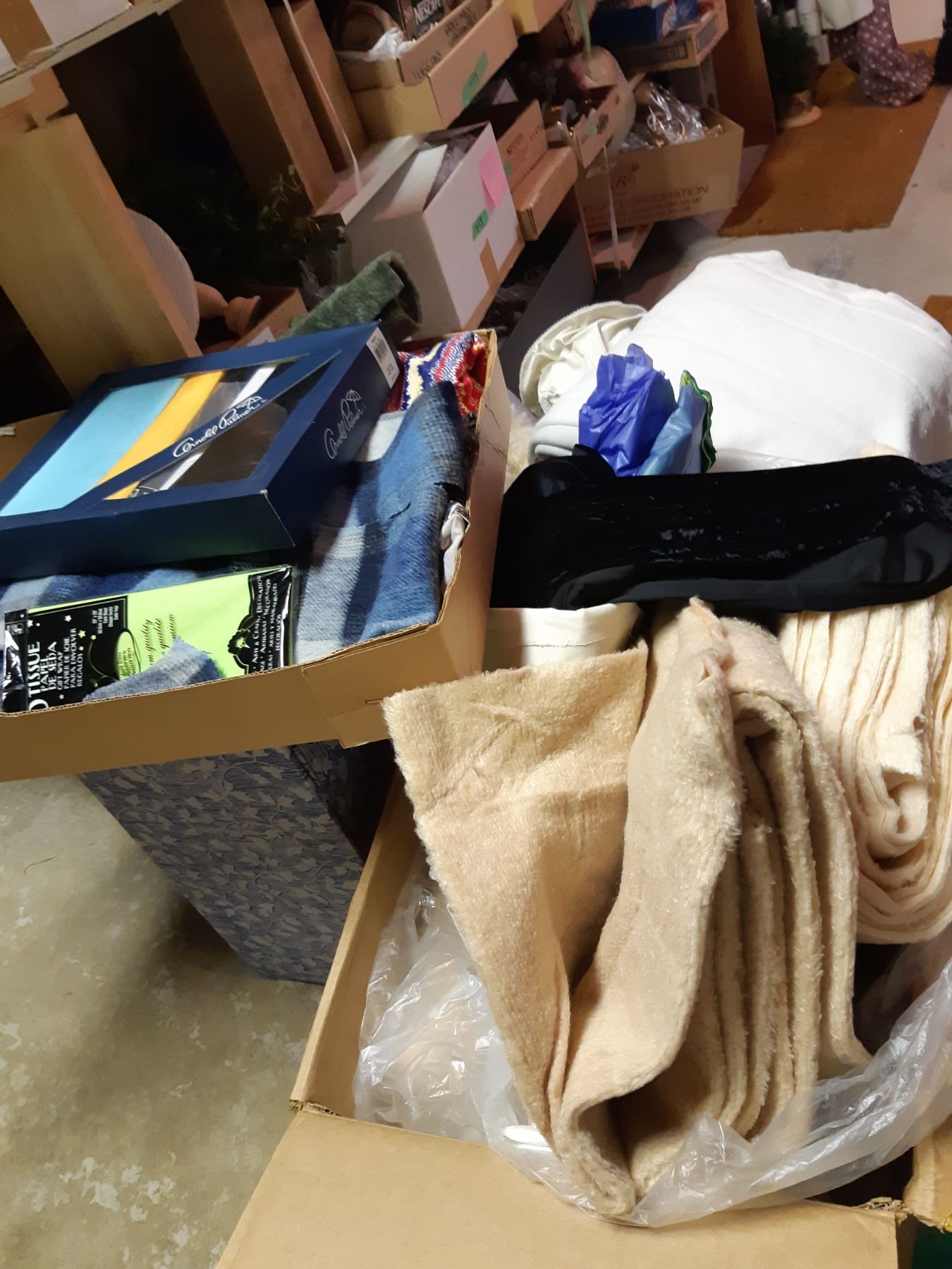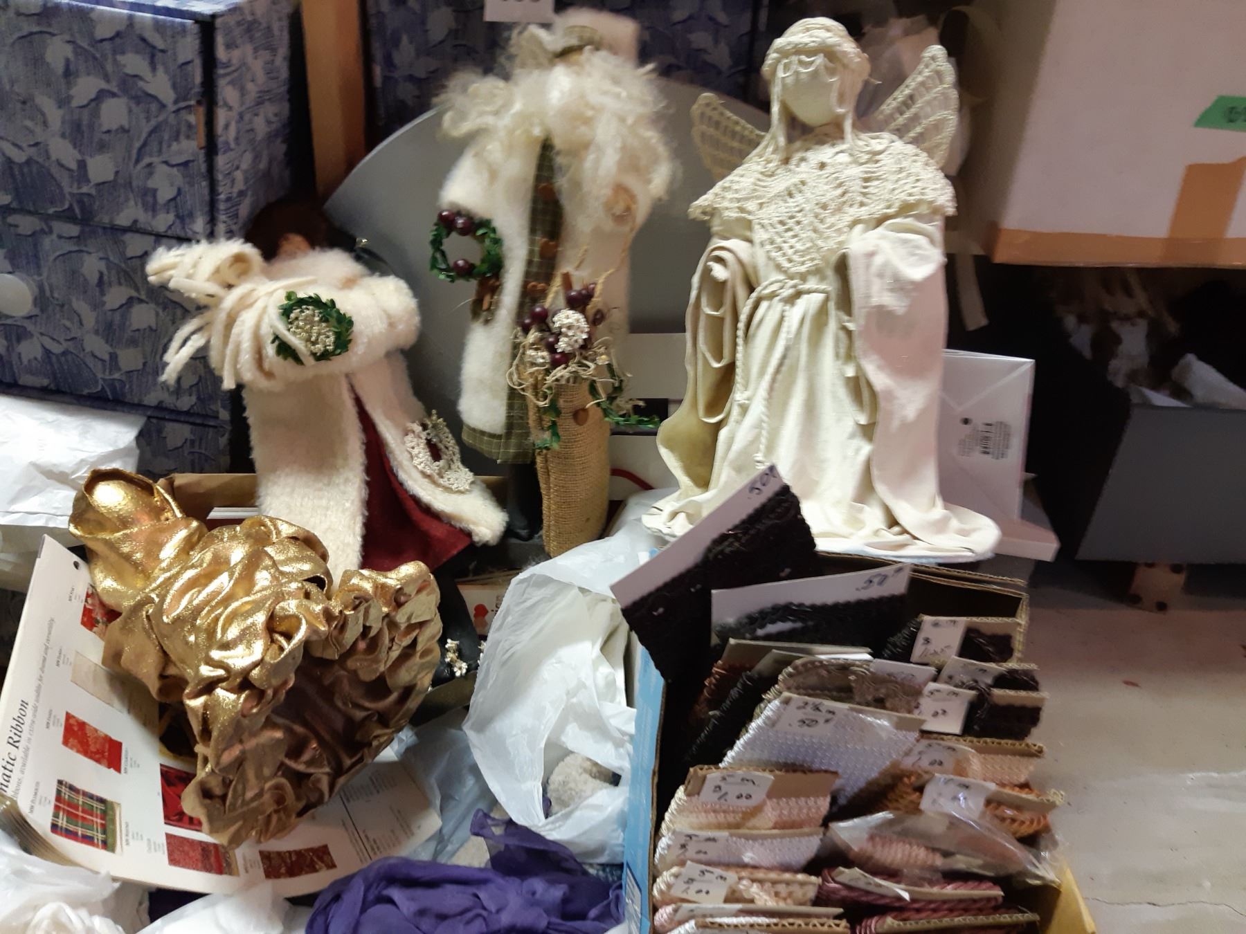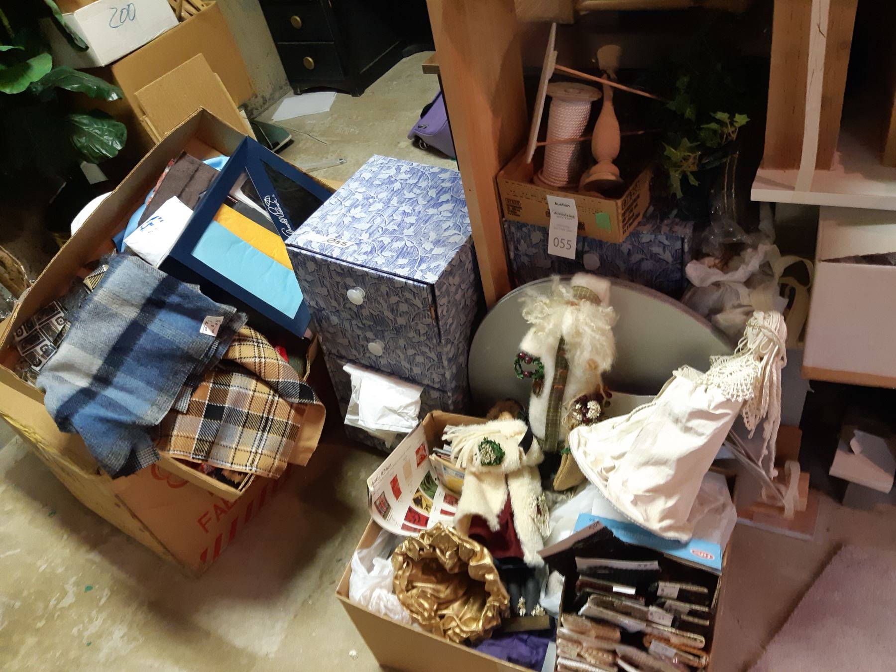 Braid, dolls, rope, and more, 2 boxes fabric assorted scraps, pickup 11:30