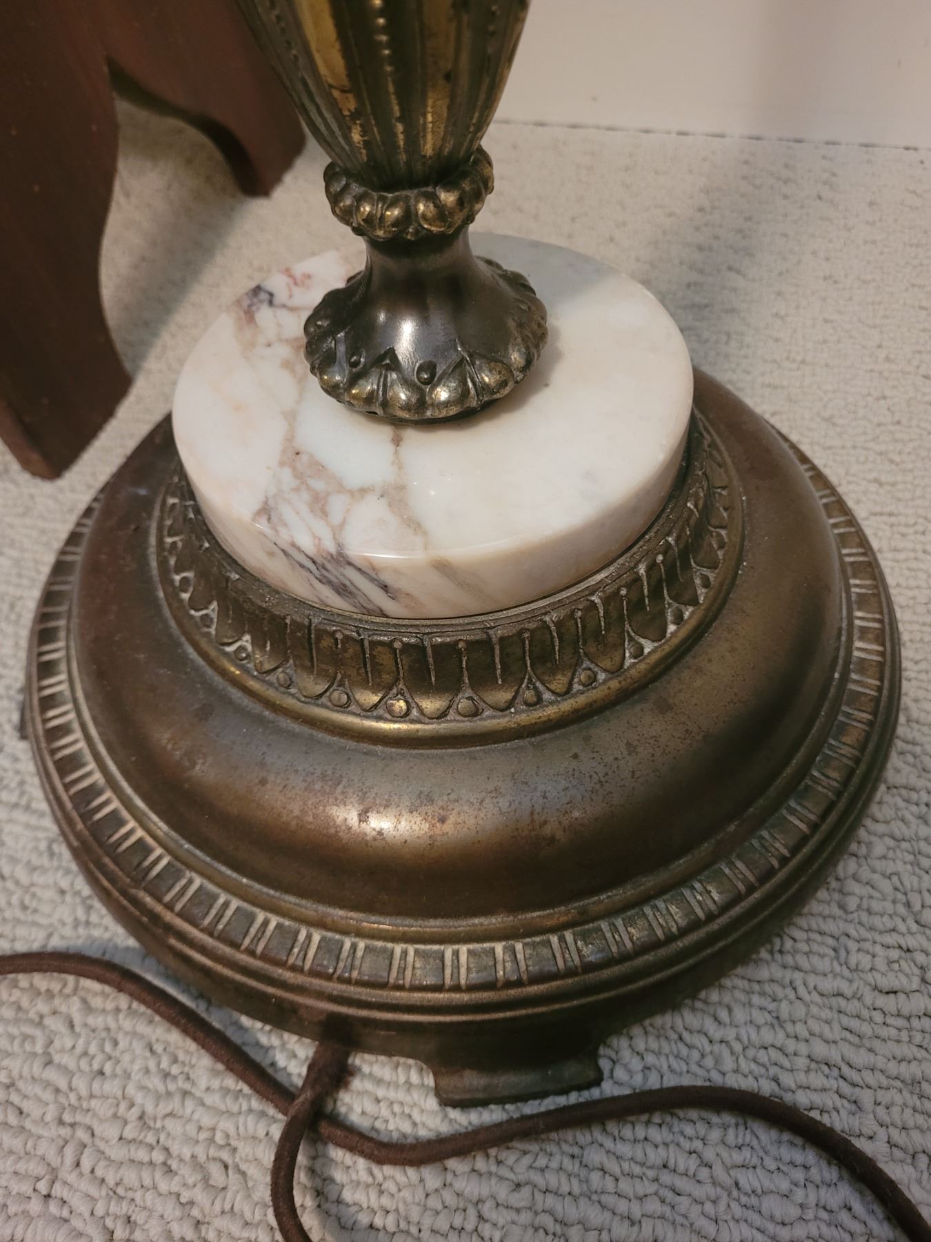 Very heavy brass floor lamp with marble on base. 65". Pickup at 10 am