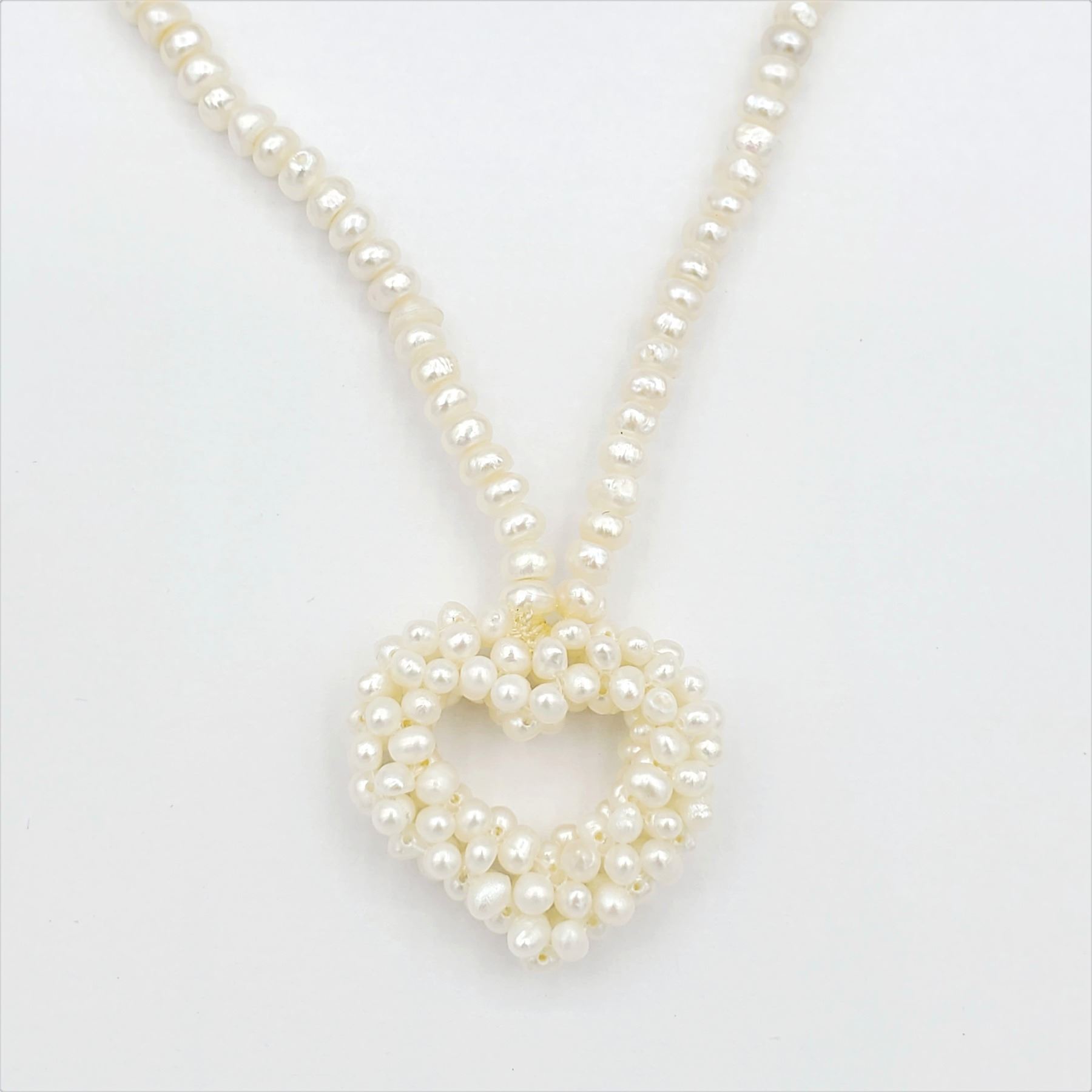 Brass genuine Freshwater Pearl heart Necklace, Approximately 244 Freshwater Pearls, With appraisal of $1000.00, Pearl is the birthstone for June.