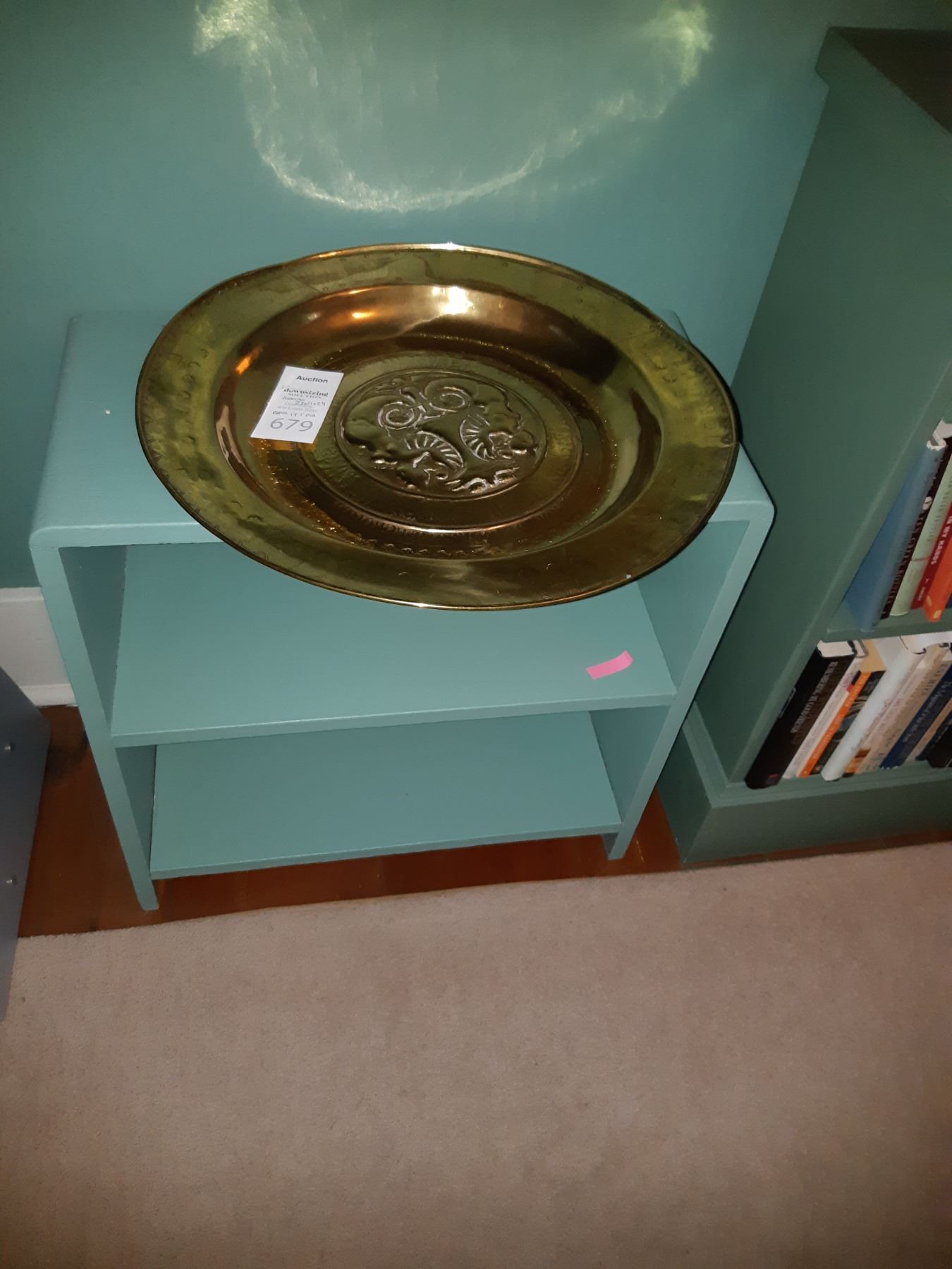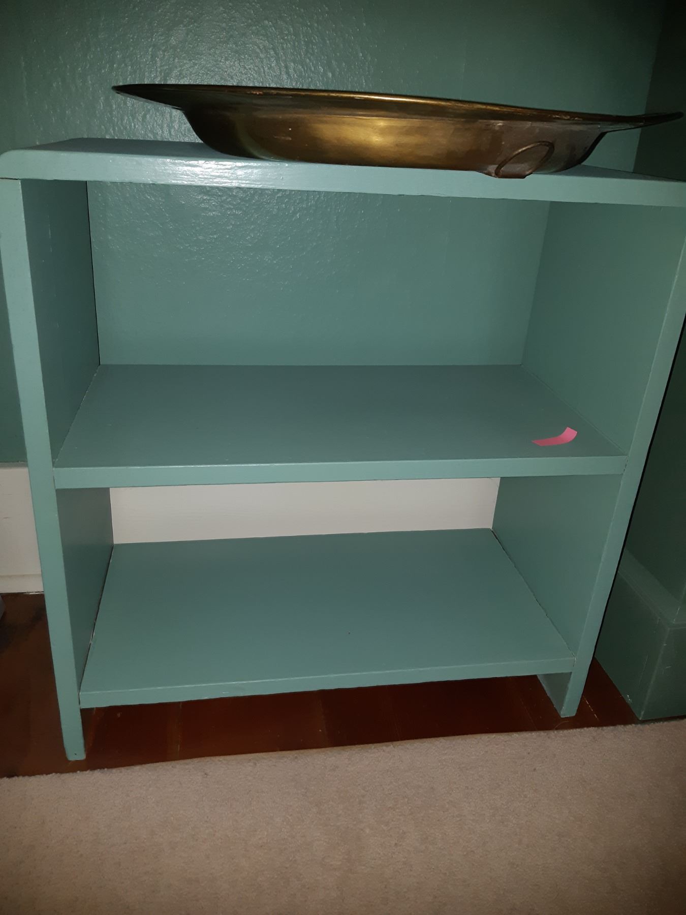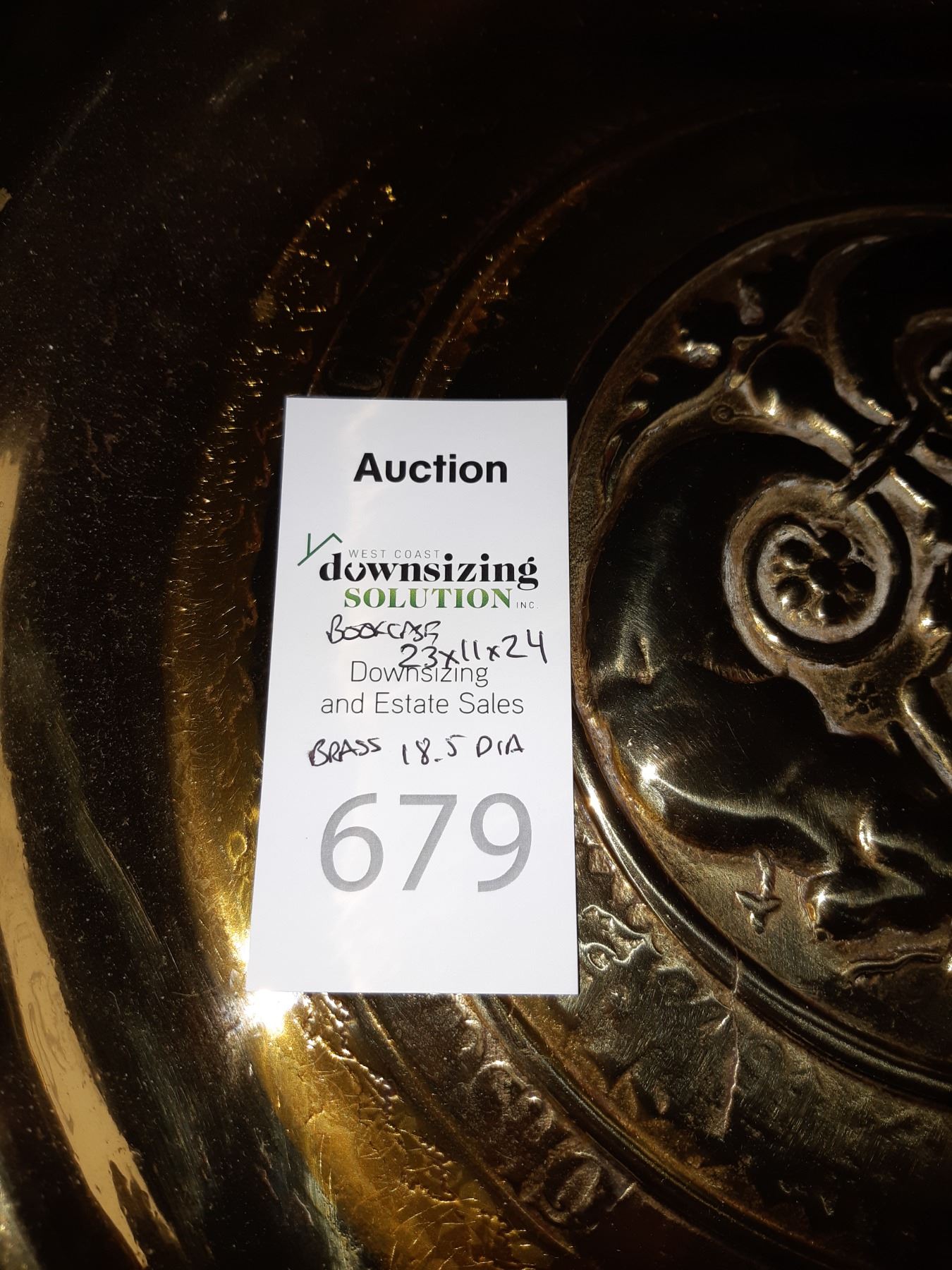 Brass plate, 18.5. Bookshelf 23x11x24. Pick up 11 am