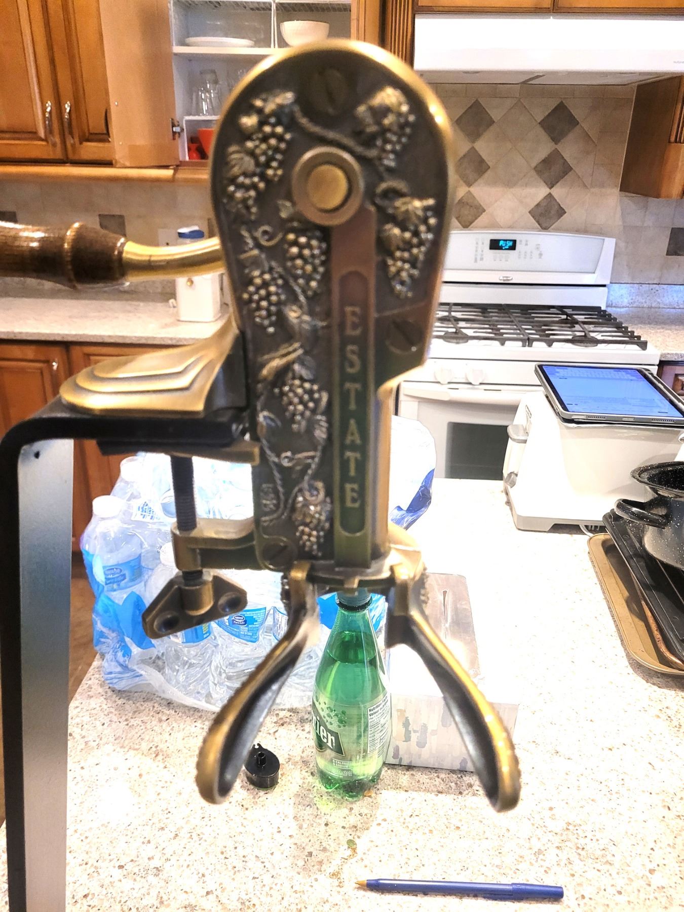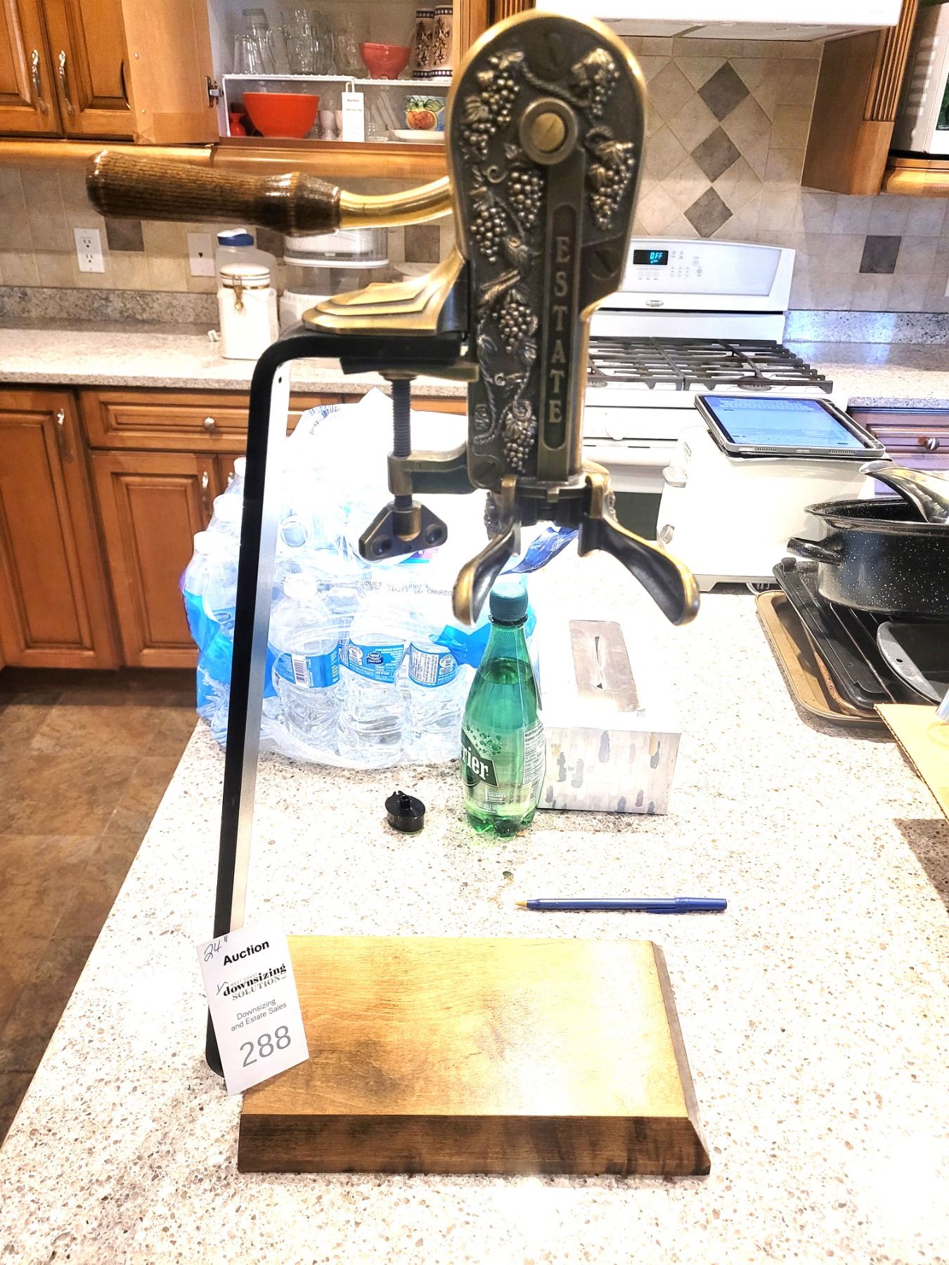 Estate brand brass wine corker, can remove or cork bottles. 24". Pick up 9-10