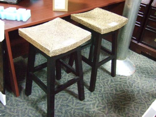 Brazilian Walnut Framed Sea-grass Bar Stools