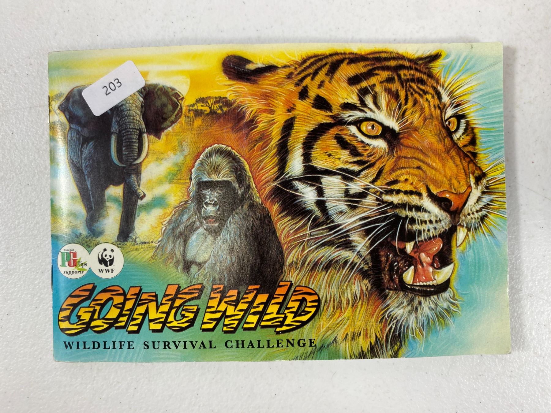 PG Tips / WWF 'Going Wild' wildlife survival chenge album featuring rich illustrations and conservation‑themed content. Popular 1980s wildlife collectible. Light handling wear. Appears complete or mostly complete based on included cards.