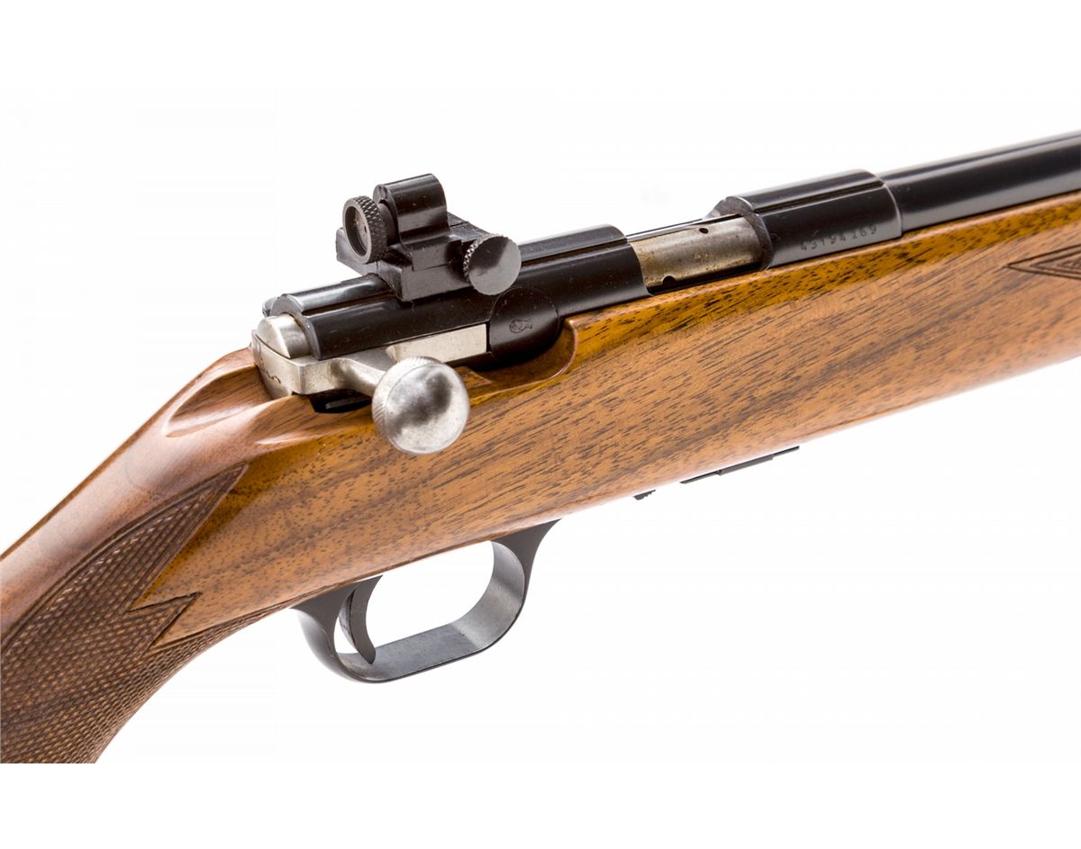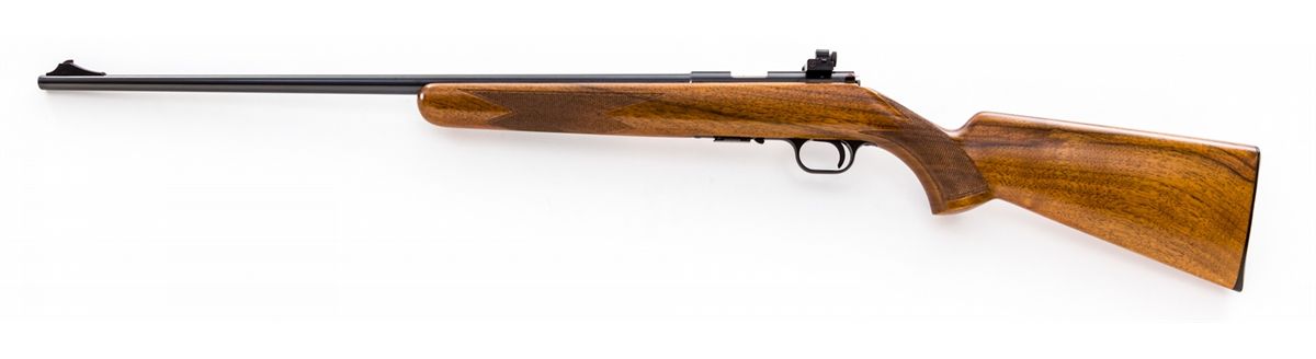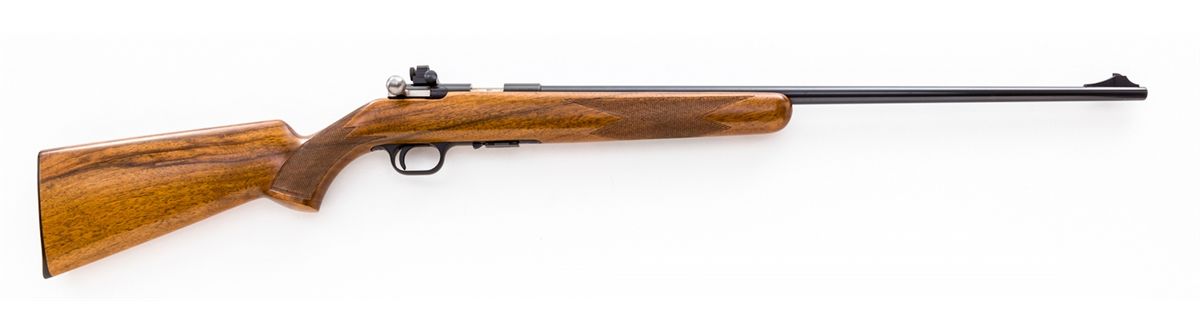 Browning T-Bolt Bolt Action Rifle, #43194X69, .22 LR cal., 24'' barrel, blue finish, select checkered walnut stock, with Williams rear peep sight and one factory five-round magazine. As mfg'd in Belgium by FN from 1965-1974. Condition is excellent showing just light marks from handling. Action is crisp, bore is bright. Guaranteed not to be a salt wood gun. Est.: $500-$750. (Modern) (Ernest A. Bryant III estate)