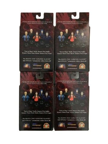 Season 5 Spike. Season 3 Fred and Illyria. Season 5 Angel. 2004 Diamond Select Toys. New in boxes. 3 1/4" ornaments. 7"x4" box size.