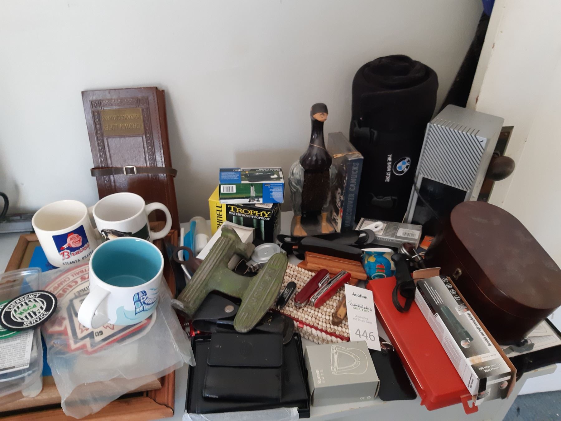 BMW blanket, wallets, pen knives, coffee mugs, Sony radio, BushnelnTrophy waterproof and fog proof 10x25 Binoculars and more. Bring packing. Pickup at 10 am