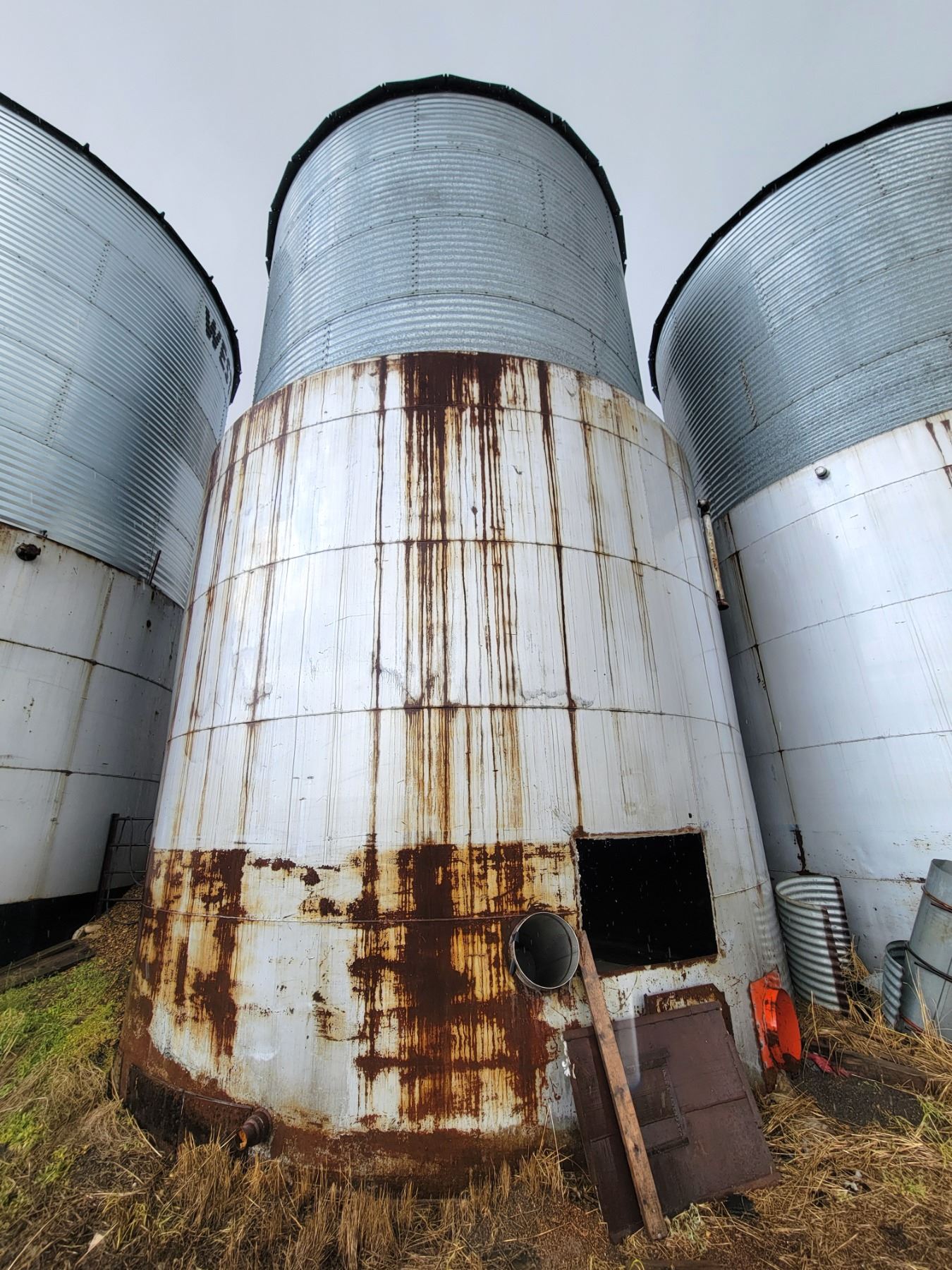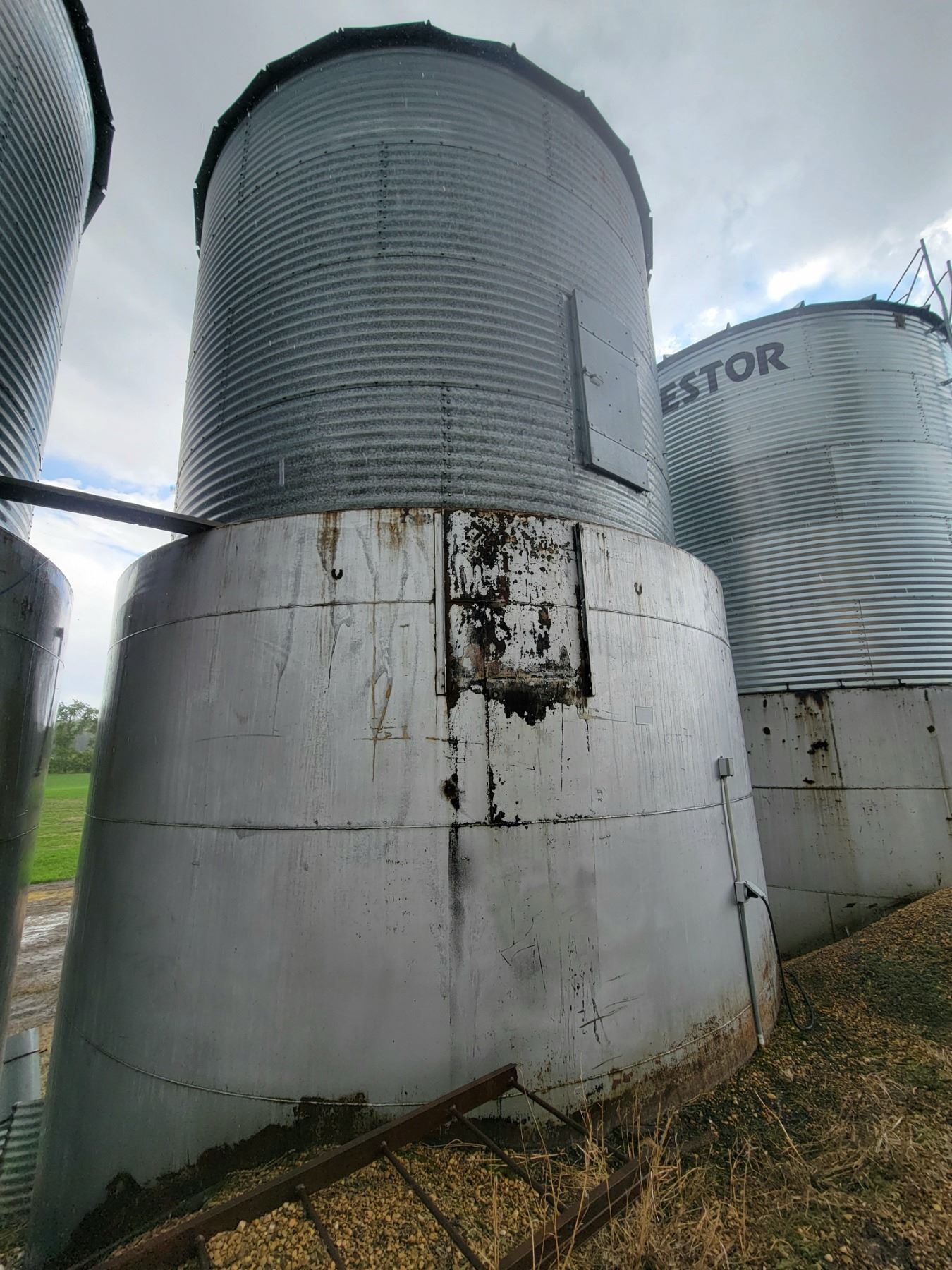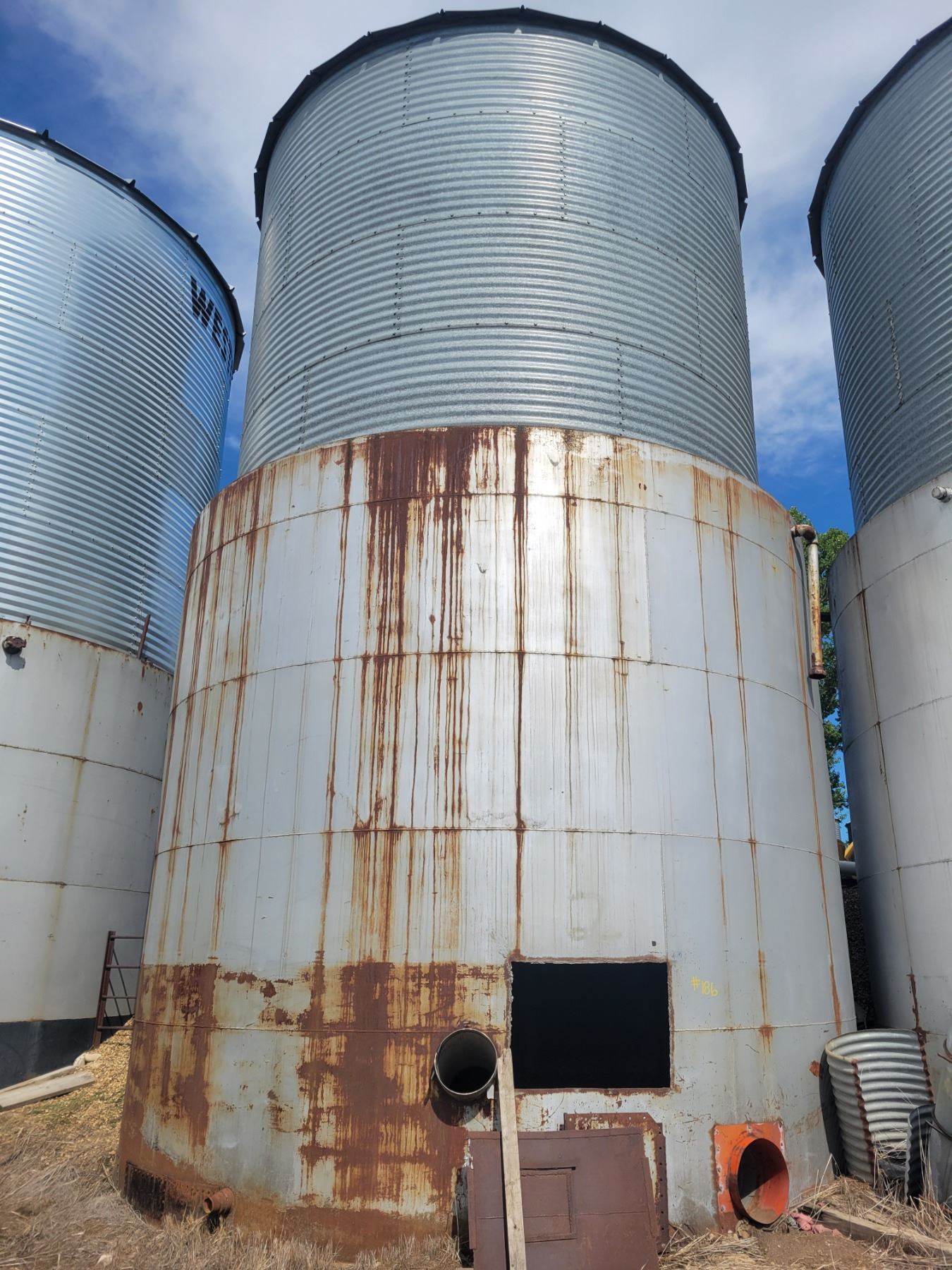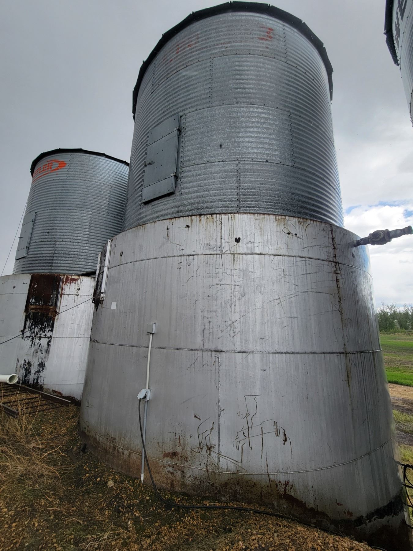 Butler 4-ring grain bin, mounted on top of a 4.5-ring steel tank c/w steel btm, Buyer responsible to load, Absolutely NO REMOVAL Between July 31st to Aug 4th, PH: Conrad (780) 818-6179