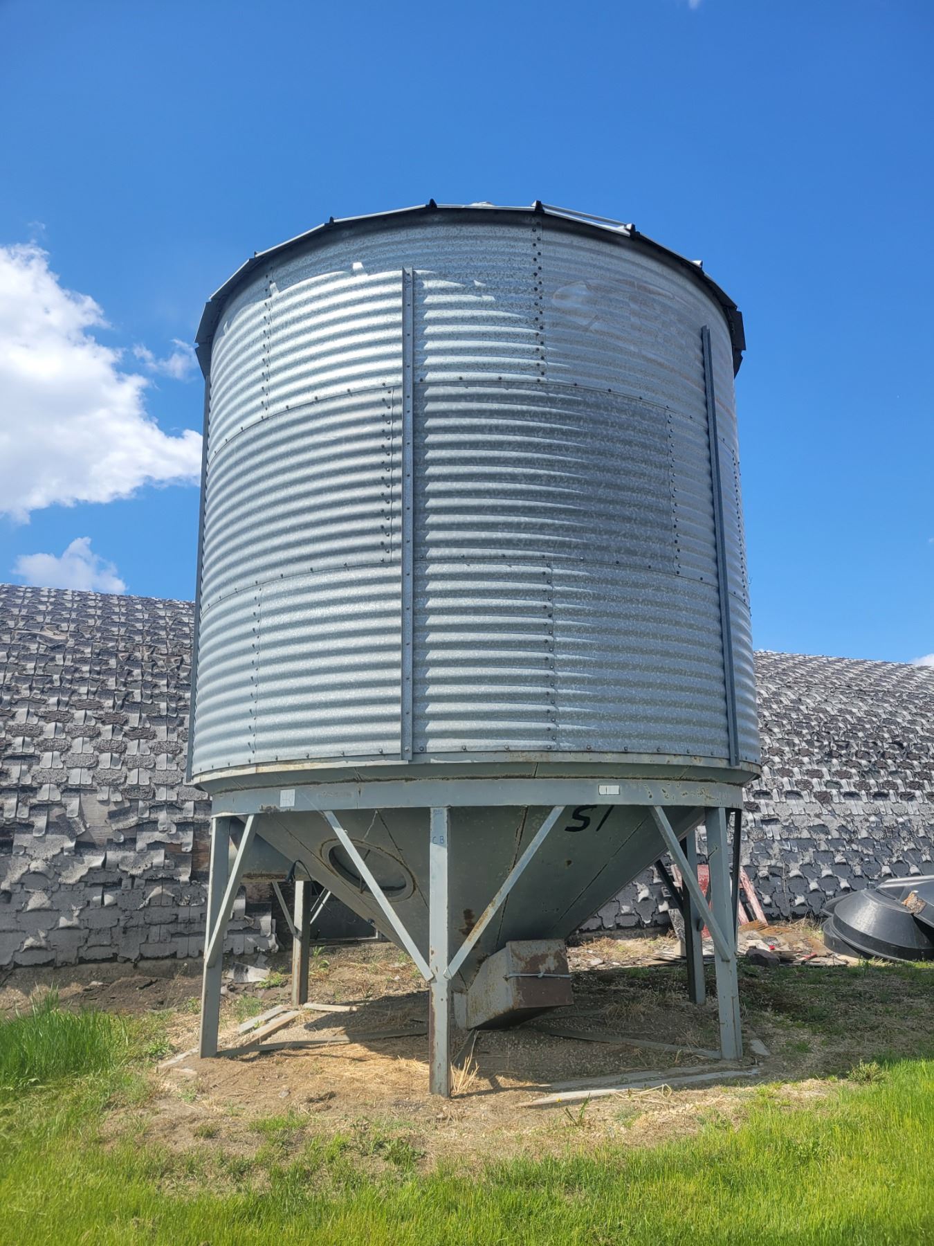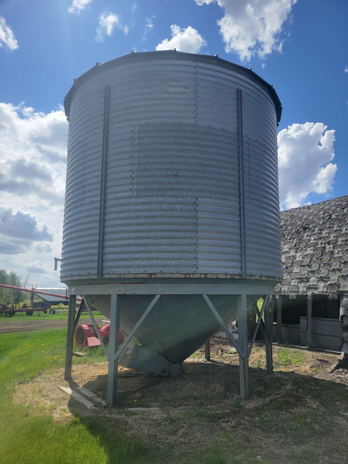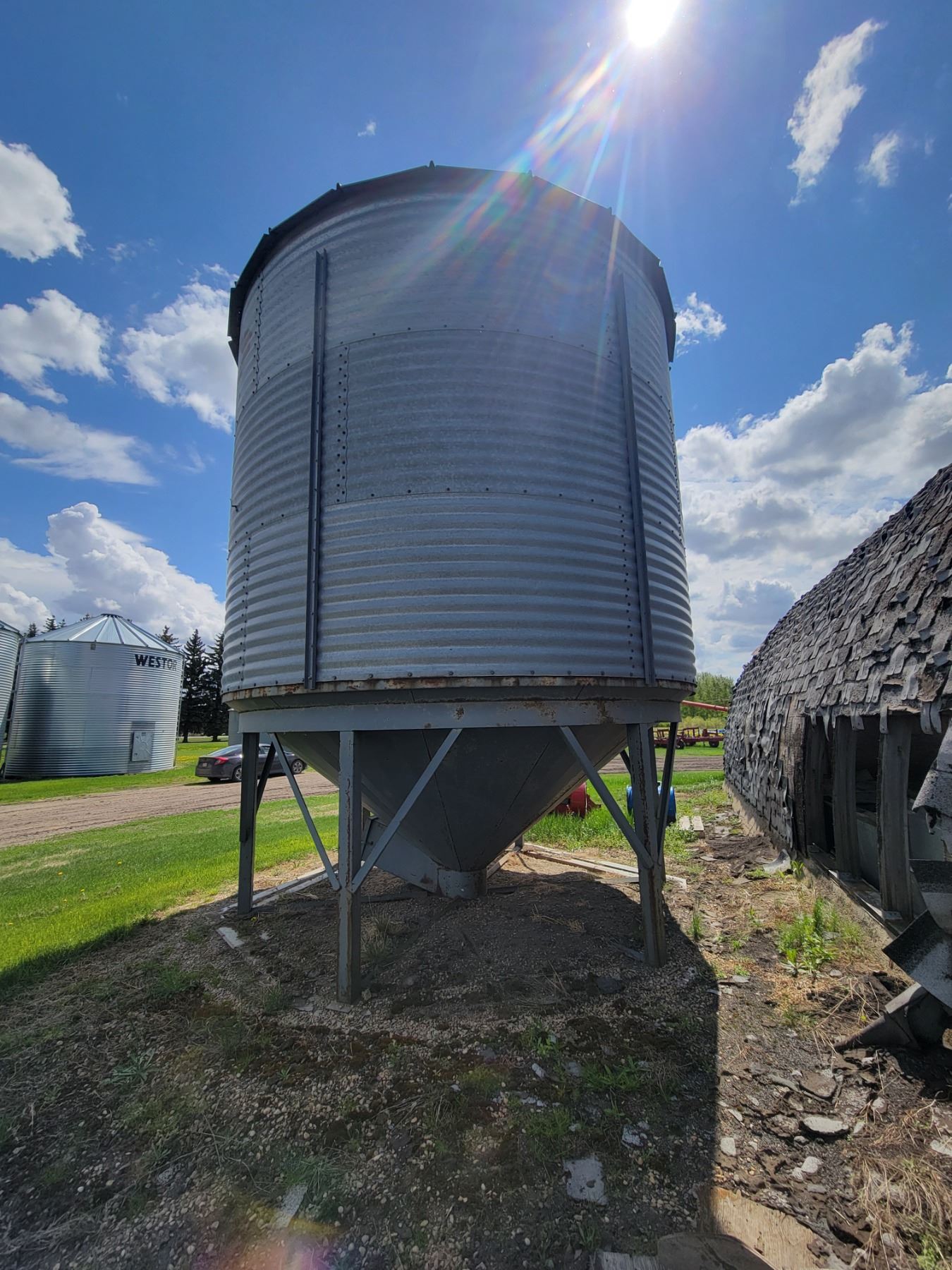 Butler Hopper Bin 14' dia. x 3-ring, approx. 1500 Bu, aeration ducts, temp. cable, double skid. To Be Moved by December 31st, 2025. Located: 21121 31 St, NE, Edmonton. PH: Todd (780) 499-5060