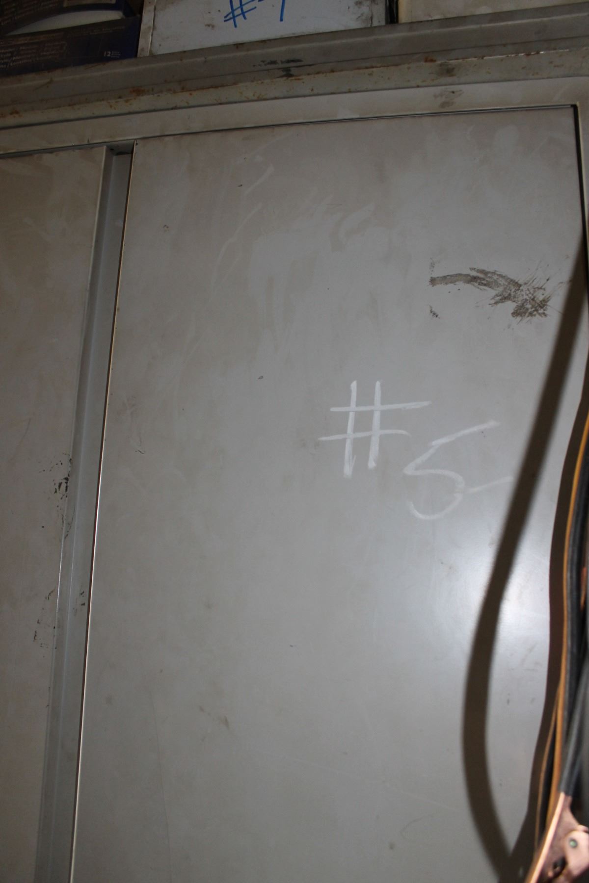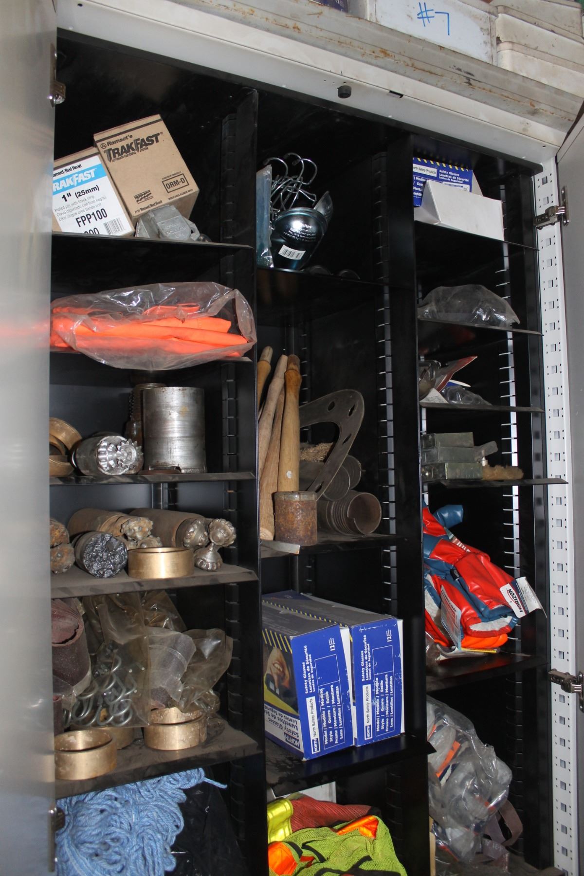 CABINET C/W HANDLES, GLOVES, DRILL BITS, CASTER WHEELS & RAIN GEAR