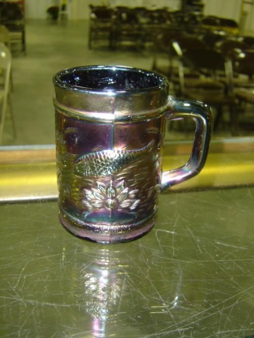 CARNIVAL GLASS FISHERMAN'S MUG; PURPLE