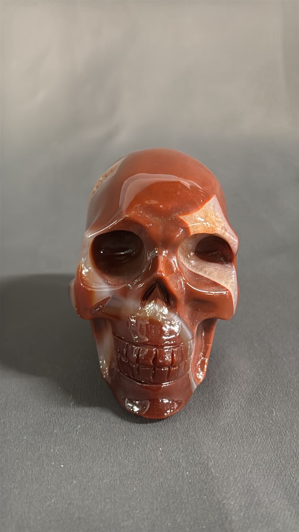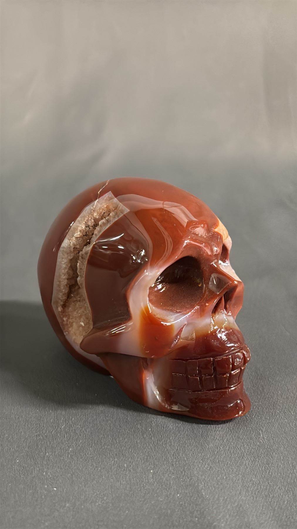 CARVED RED AGATE GEODE SKULL: APPROX. 3" TALL