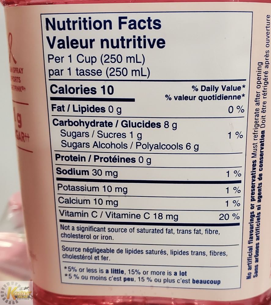 CASE OF 8 OCEANSPRAY PINK DIET CRANBERRY 1.89L