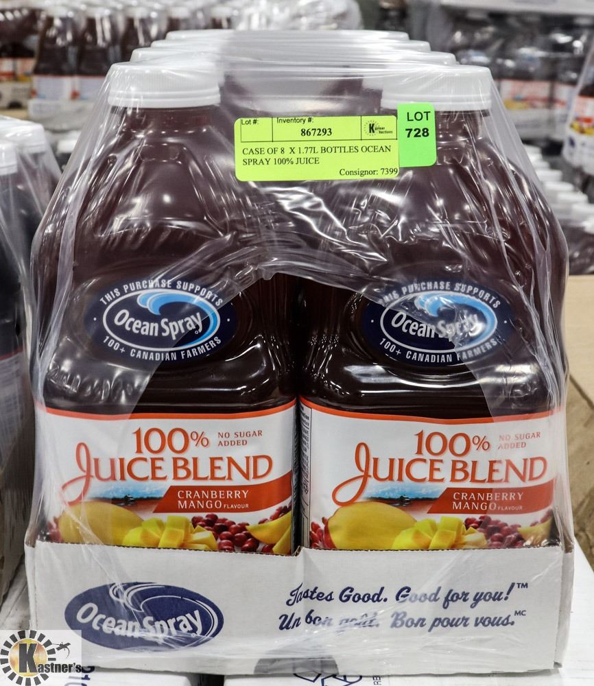 CASE OF 8  X 1.77L BOTTLES OCEAN SPRAY 100% JUICE