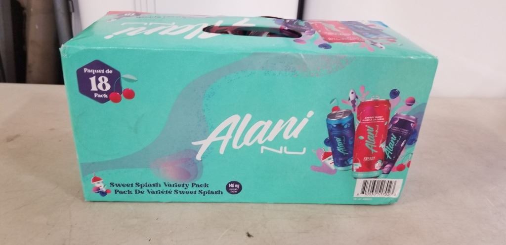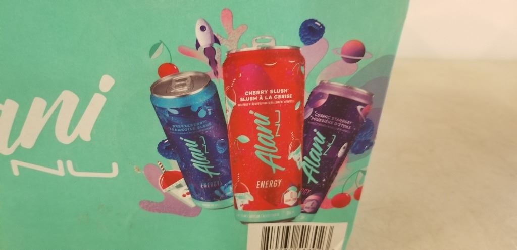 CASE OF ALANI NU ENERGY DRINKS, VARITY PACK INCLUDES CHERRY SLUSH, COSMIC STARDUST AND BREEZEBERRY FLAVOURS, 18 X 355ML BEST BEFORE MAY 2026