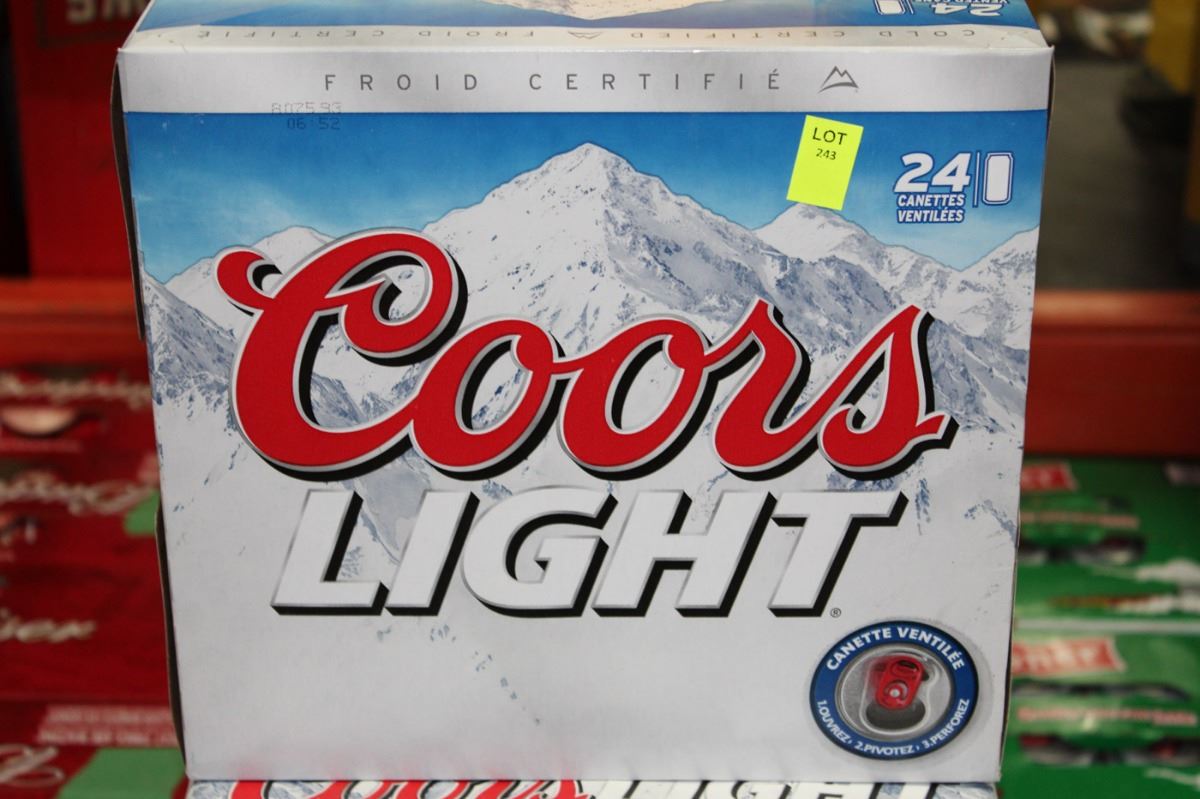 CASE WITH 24 CANS OF COORS LIGHT BEER 4%