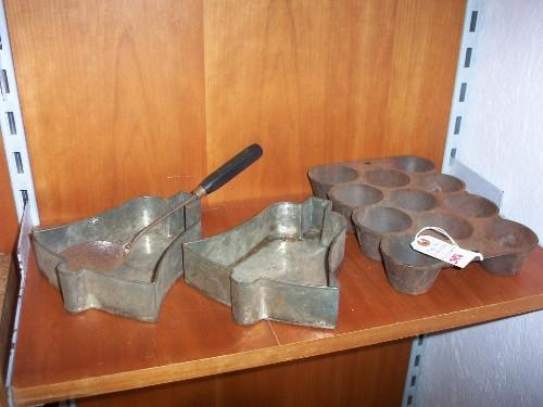 MUFFIN PAN AND TWO TIN BELL SHAPED CAKE PANS