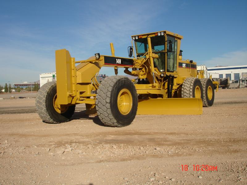 1999 CATERPILLAR 14H MOTOR GRADER, s/n 7WJ01383: 16ft. HYDRAULIC SIDE SHIFT MOLDBOARD, TIP CONTROL, ACCUMULATORS, M/S RIPPER, PUSH BLOCK, LO PRO CAB, A/C, 20.5R25 TIRES
