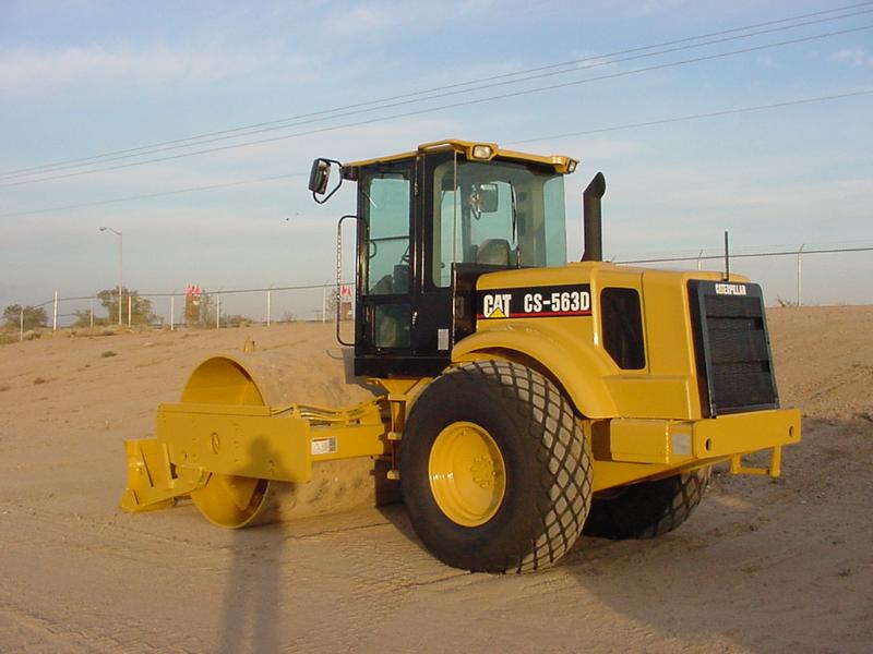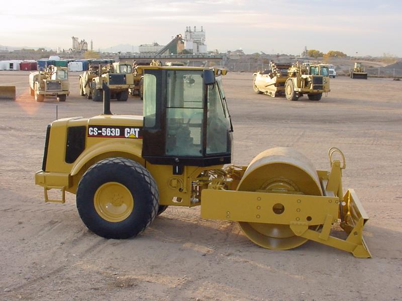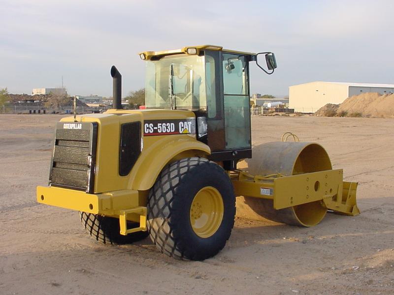 1999 CATERPILLAR CS563D AW VIBRATORY SMOOTH DRUM COMPACTOR, s/n 9MW00218: CATERPILLAR 3116T DIESEL ENGINE, HYDROSTATIC DRIVE, HYDRAULIC LEVELING BLADE, 84in DRUM, CAB, A/C, 23.1X26 TIRES