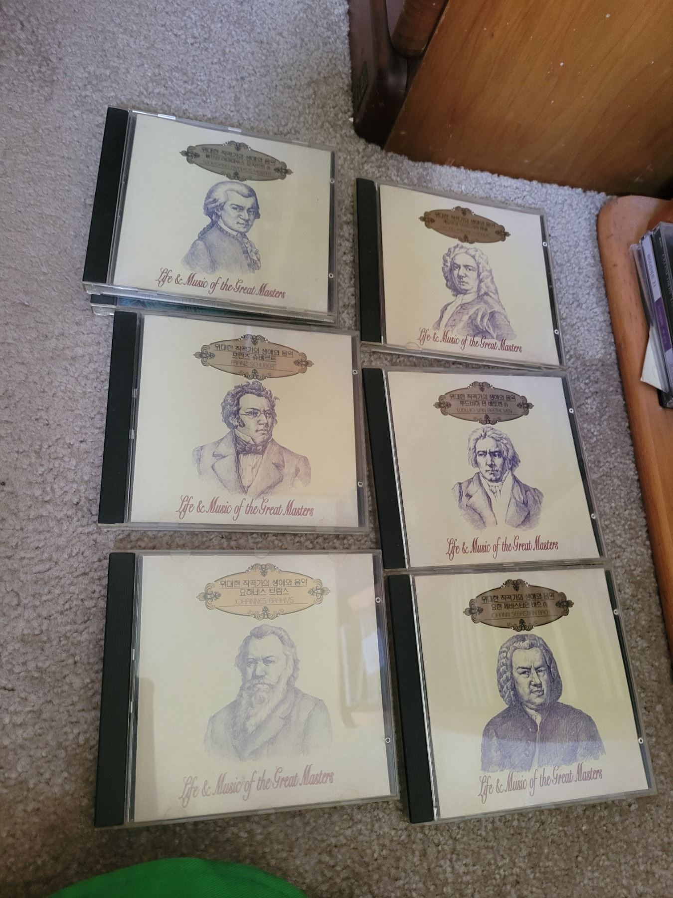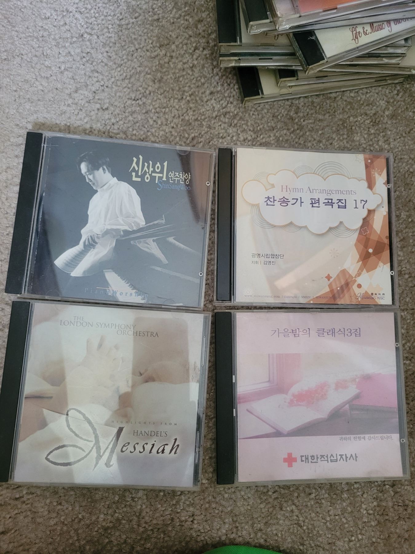 Collection of Korean CD's with wood tower. Pick up 9-10