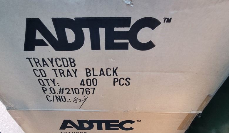 ---need extra person to help many boxes , Brand New 9 boxes of 400 pieces and 1 box of 400 Adtec CD trays TOTAL: about 4000 pcs good for Computer Store retail of Dollar Store retailer Super Deal lower than wholesale pricing