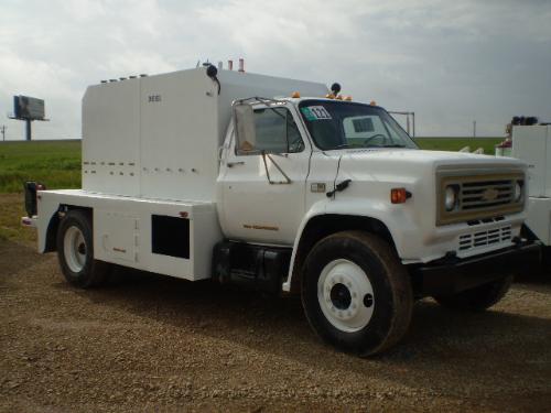 1987 CHEVROLET KODIAK 70 T/A FUEL & LUBE TRUCK, s/n 1GBJ7D1F0HV106669: DETROIT 8.2L DIESEL ENGINE, 5 SPD. TRANS., COMPLETE FUEL & LUBE BODY, 700-GALLON DIESEL TANK, PRODUCT TANKS, HOSES & REELS, SPRING SUSPENSION, 168in. WHEEL BASE