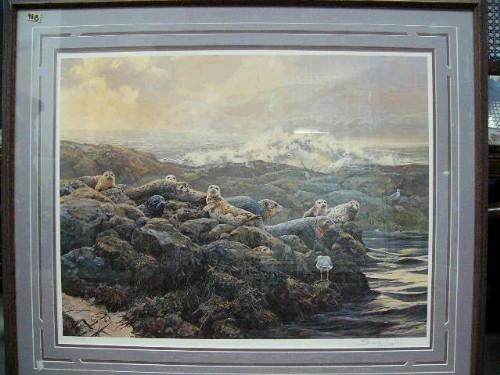 Coastal Ciique Harbor Seals) print by Seerey Lester 1992 (100)