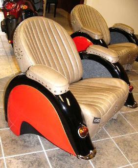 CHOICE of 2 Corbin Chairs made from Indian Fenders with Electric Lights, Suicide Shifters "Indian Motorcycle Recliner"